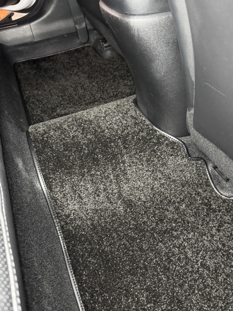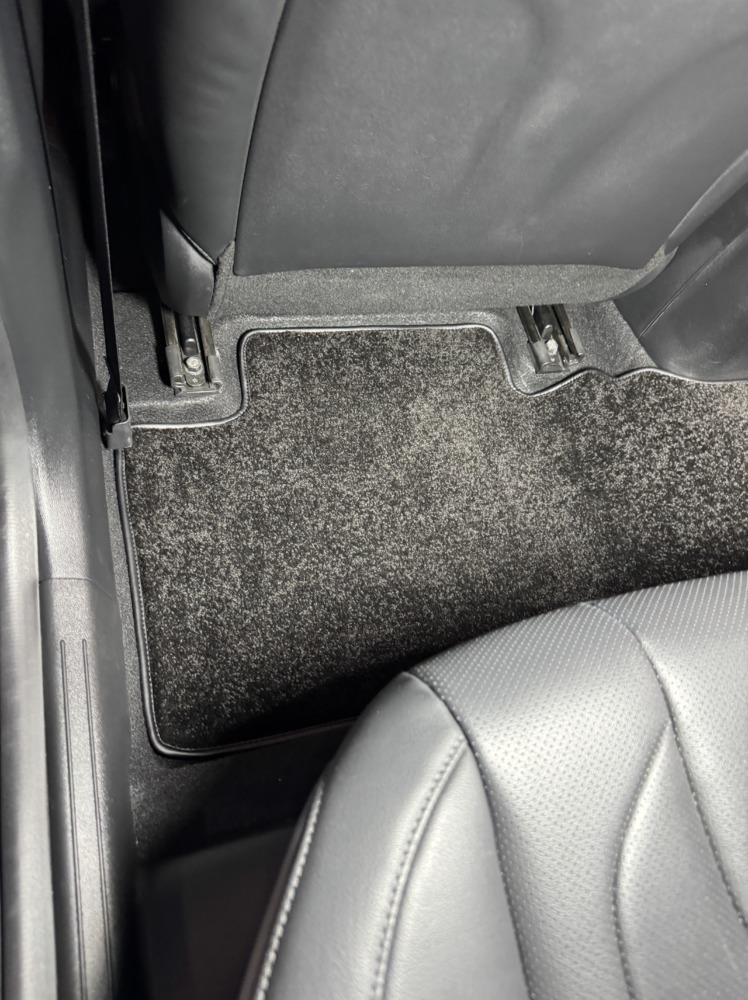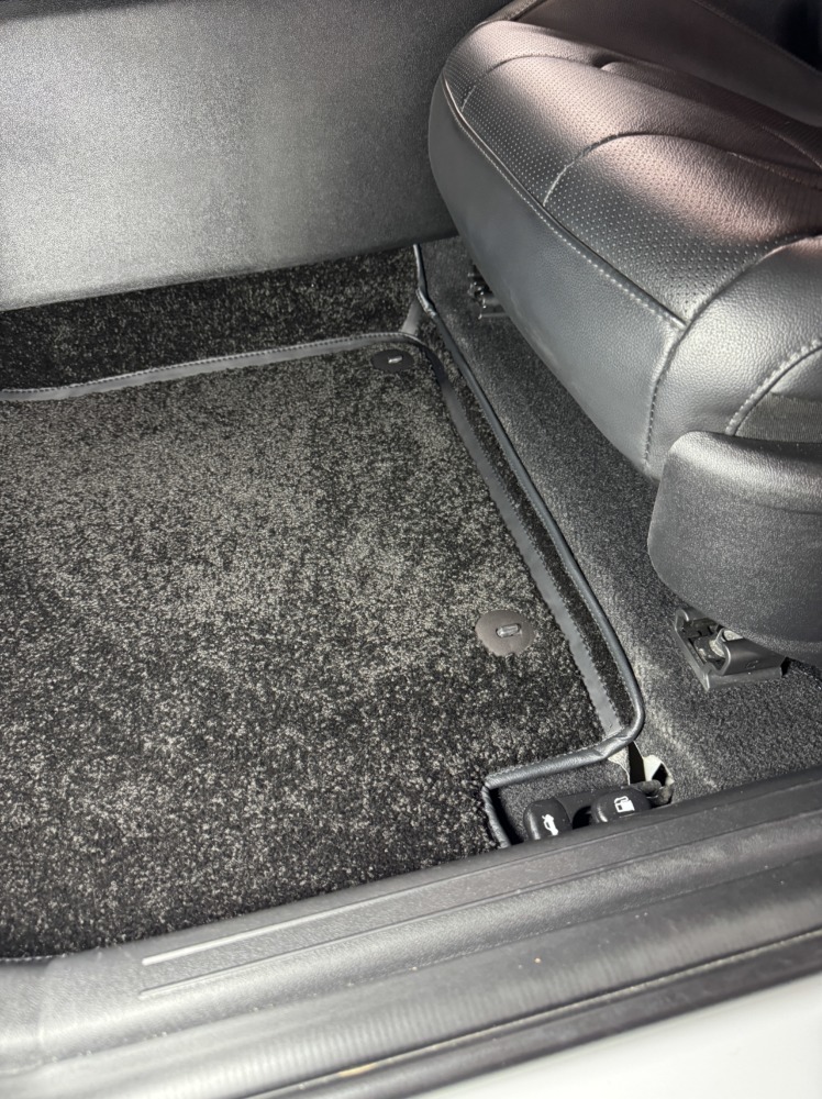 Передний ряд выполнен с небольшими бортами, закрывающими и защищающими заводской ковролин от грязи и износа. Так же закрыта зона для отдыха ноги.