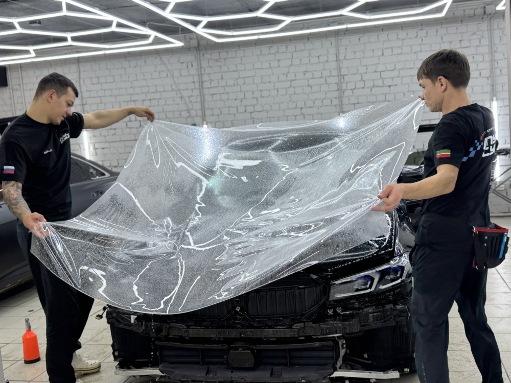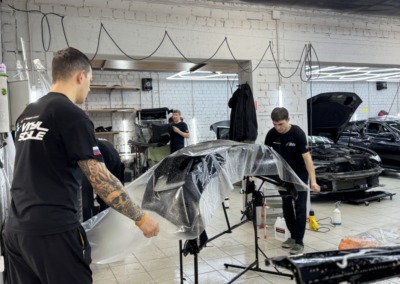Кузов отполирован и полностью забронирован глянцевой полиуретановой плёнкой.