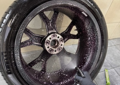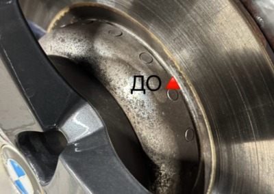 Было произведена мойка всего пространства за колесом от металлических вкраплений, налёта и тормозной пыли:
