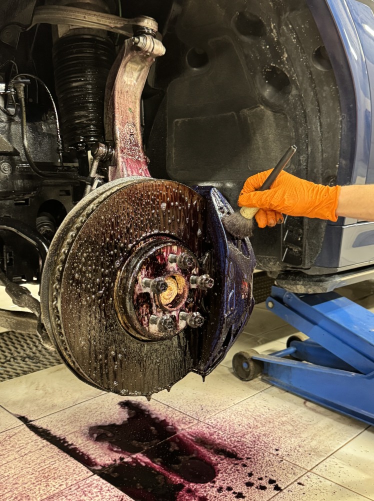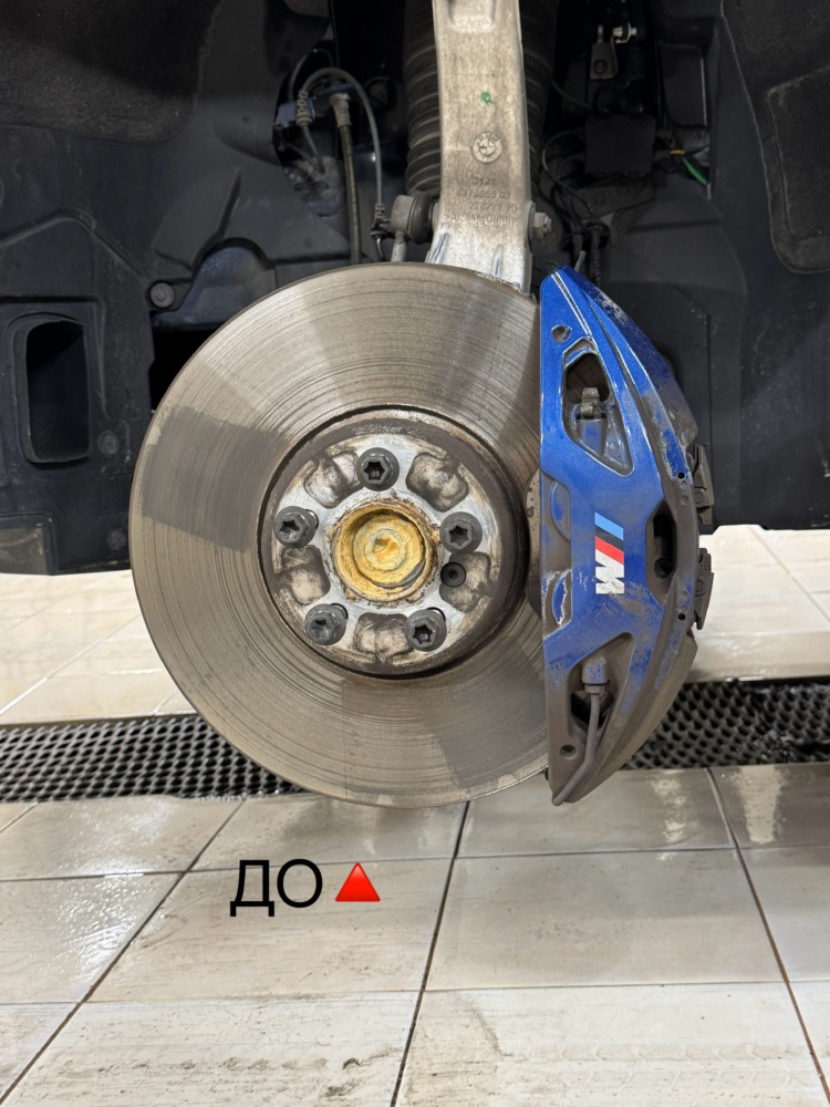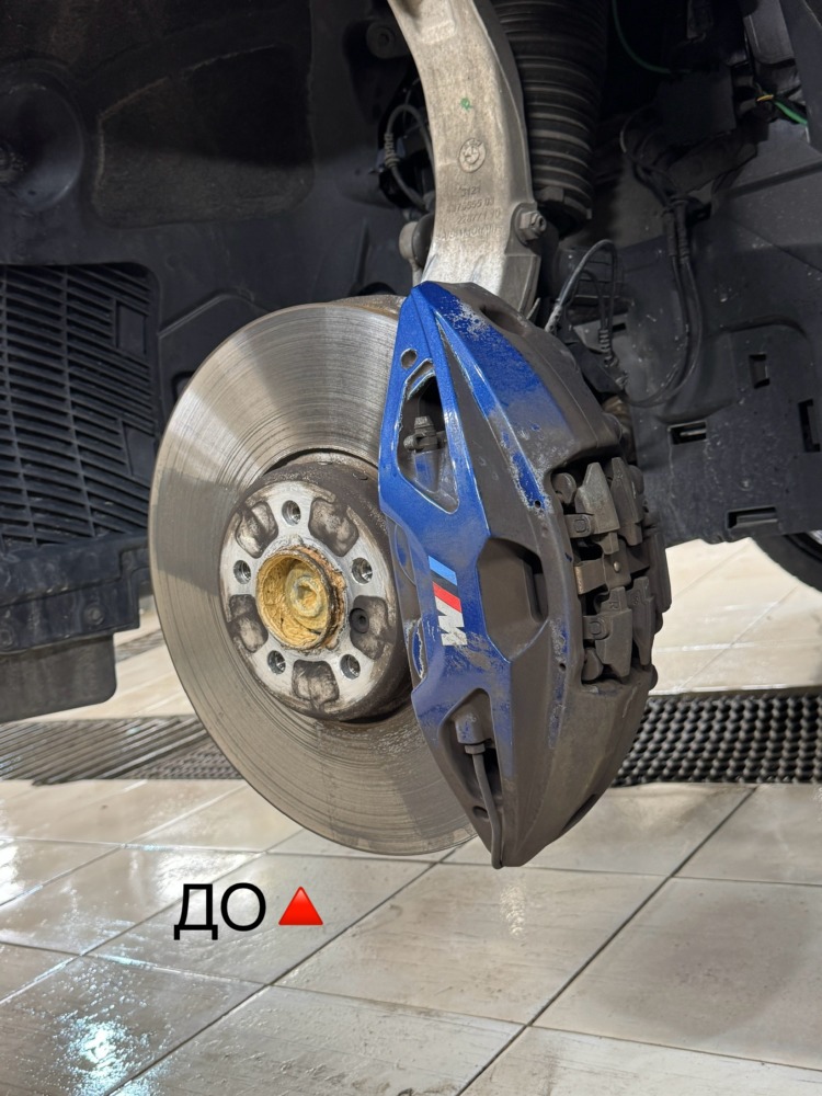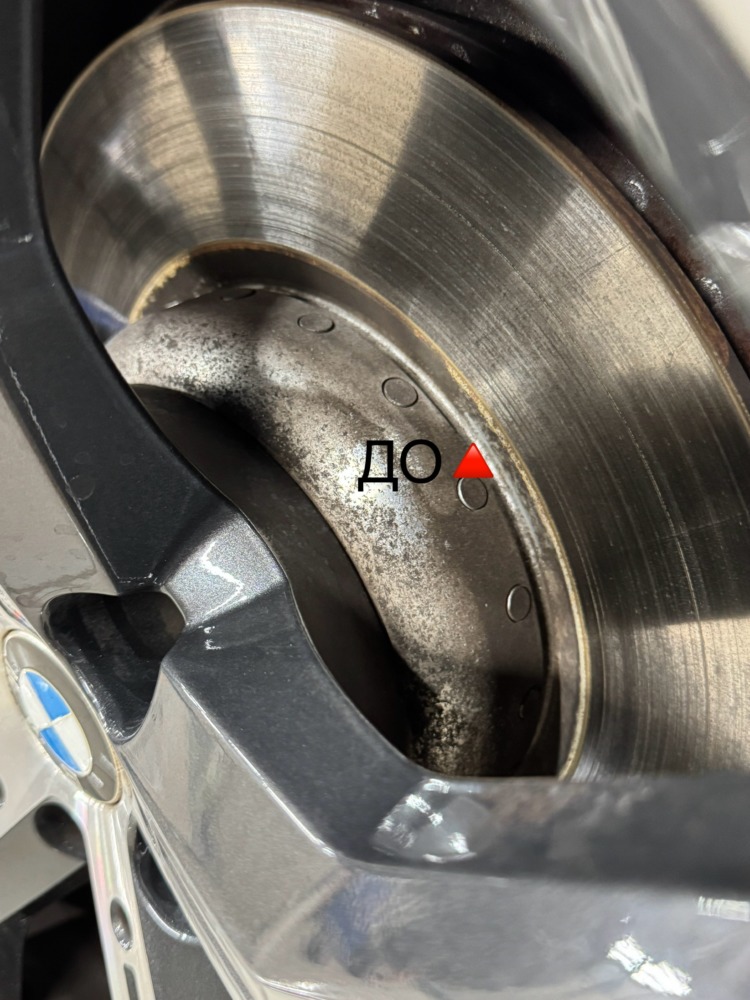 Было произведена мойка всего пространства за колесом от металлических вкраплений, налёта и тормозной пыли: