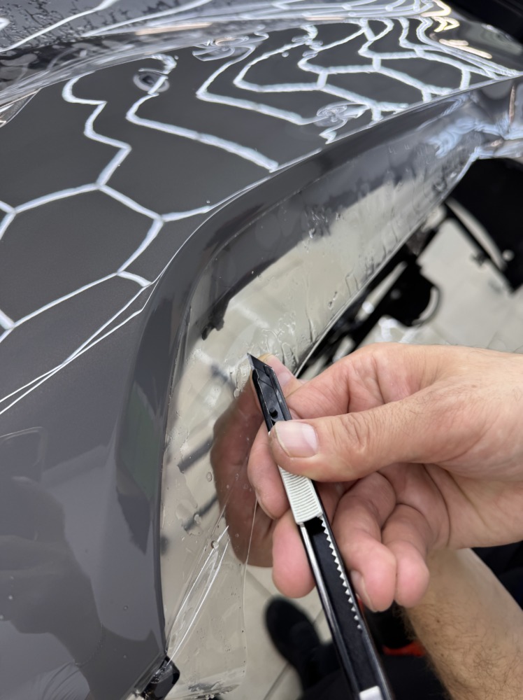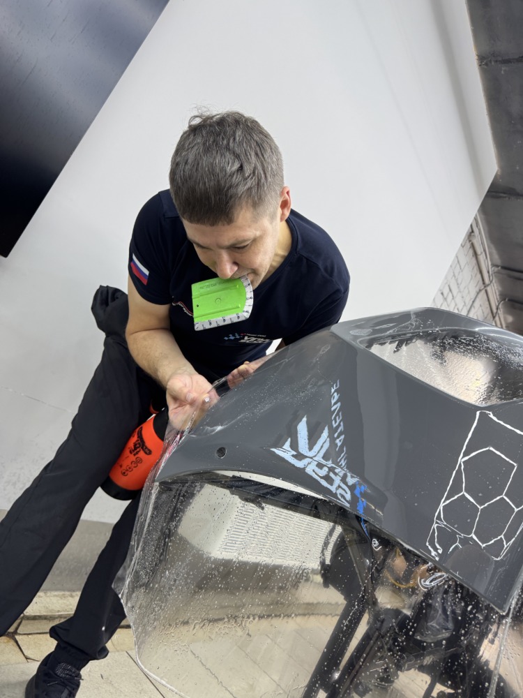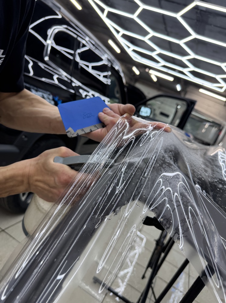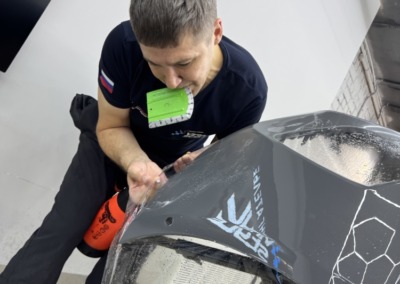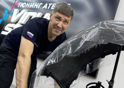 На переднем бампере имелись царапины, мы его покрасили и забронировали, чтобы избежать появления новых повреждений.