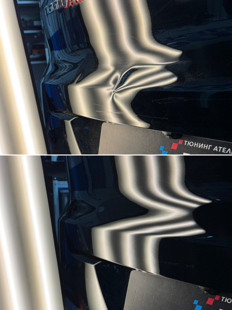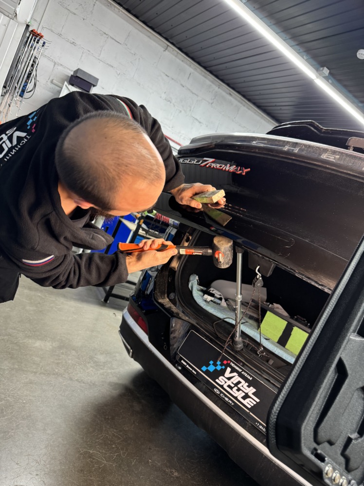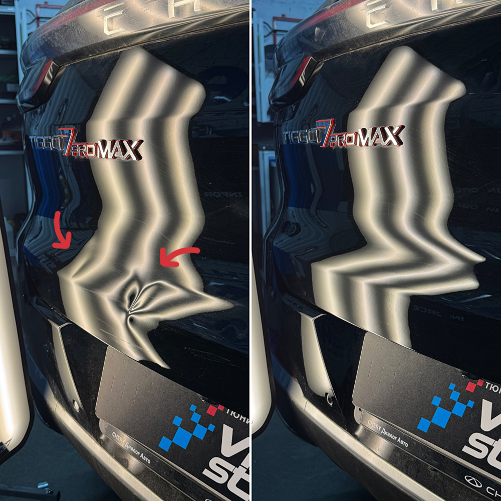 Ремонт необычных вмятин на крышке багажника Chery Tiggo 7 pro max.