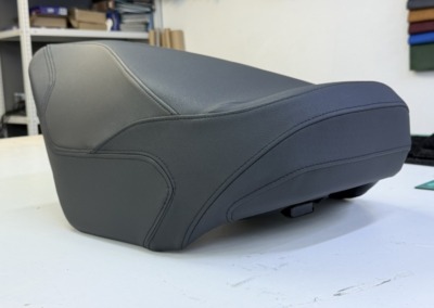Ремонт сиденья снегохода. Клиент самостоятельно выбрал экокожу, которая ему приглянулась, для замены порванного элемента — учли все пожелания и аккуратно восстановили внешний вид.