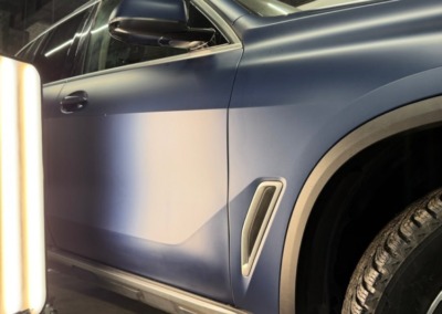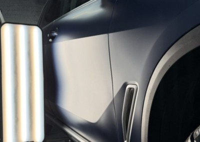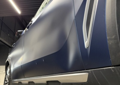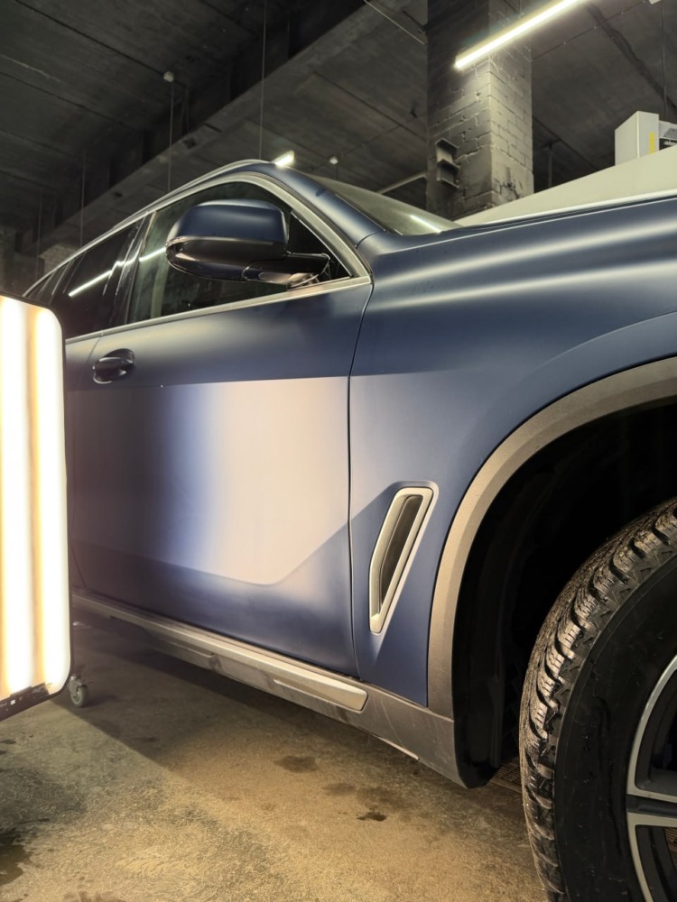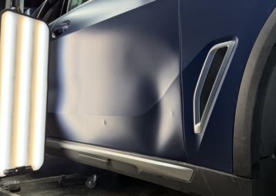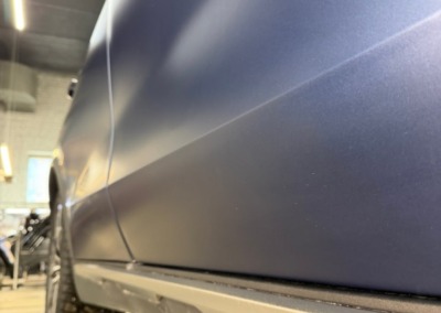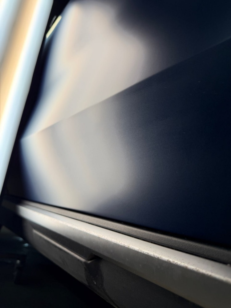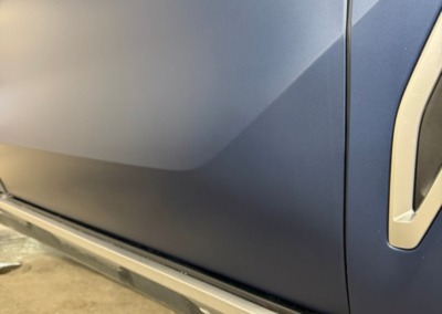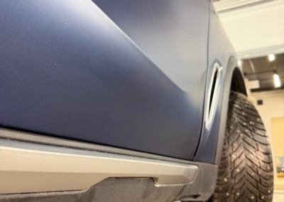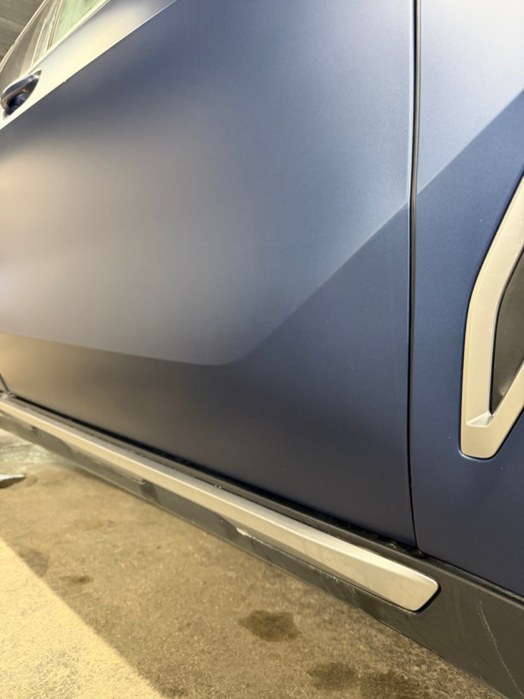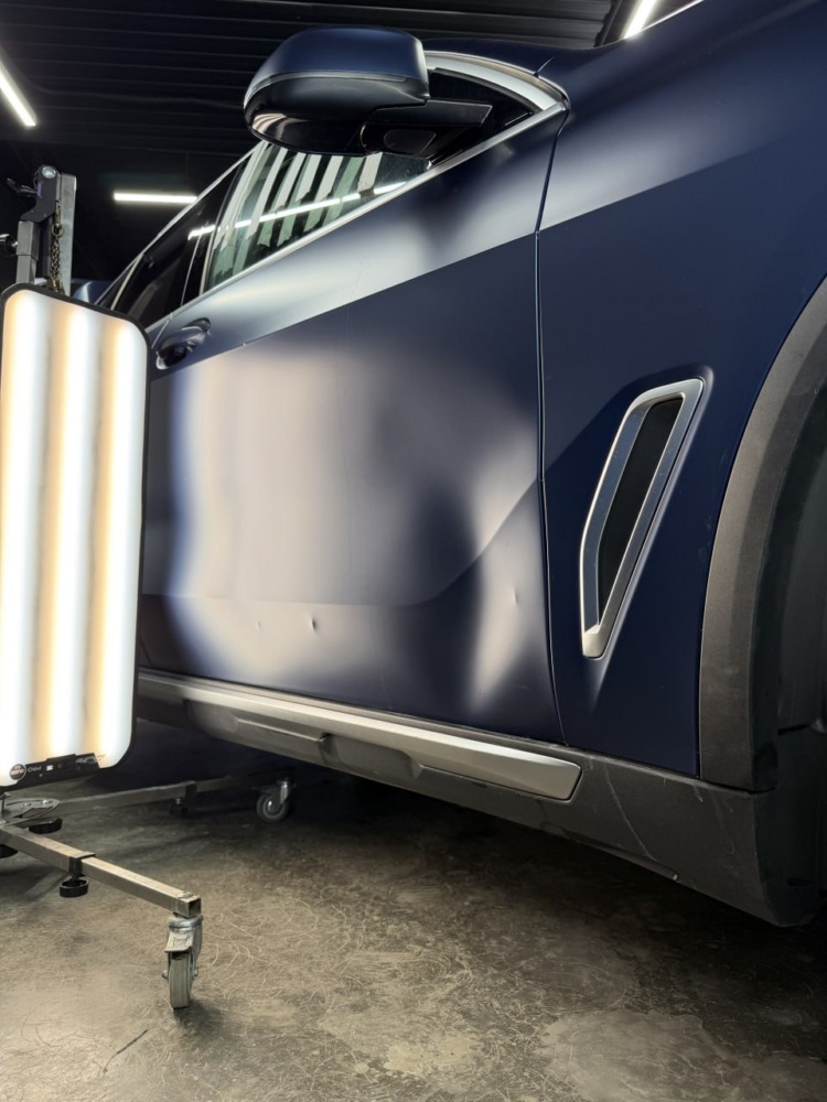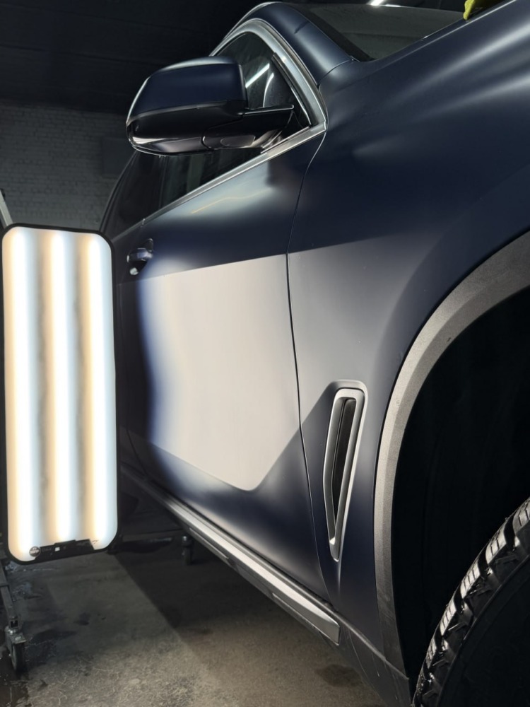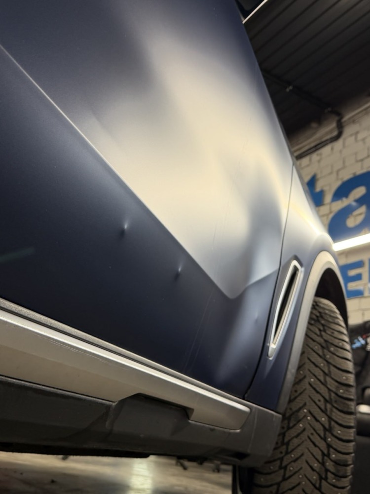 Работа потребовала аккуратности, терпения и точного контроля формы на каждом этапе. В итоге с дверью удалось полностью справиться за полтора дня: восстановили геометрию, убрали растяжения и вернули заводской вид, сохранив матовую броне-плёнку в целости! Дополнительно выставили правильный зазор между дверью и крылом, добившись точной посадки и визуальной идеальности.