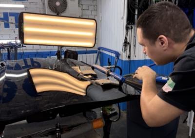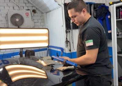 Дополнительно на детали была бронеплёнка — мы её демонтировали и после завершения работ оклеили заново.