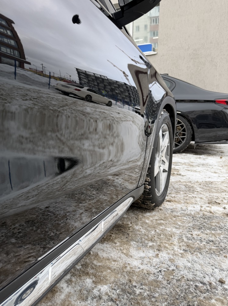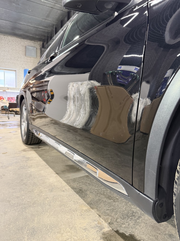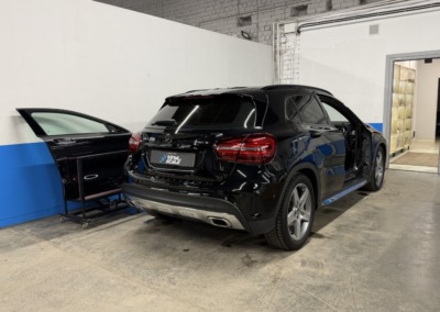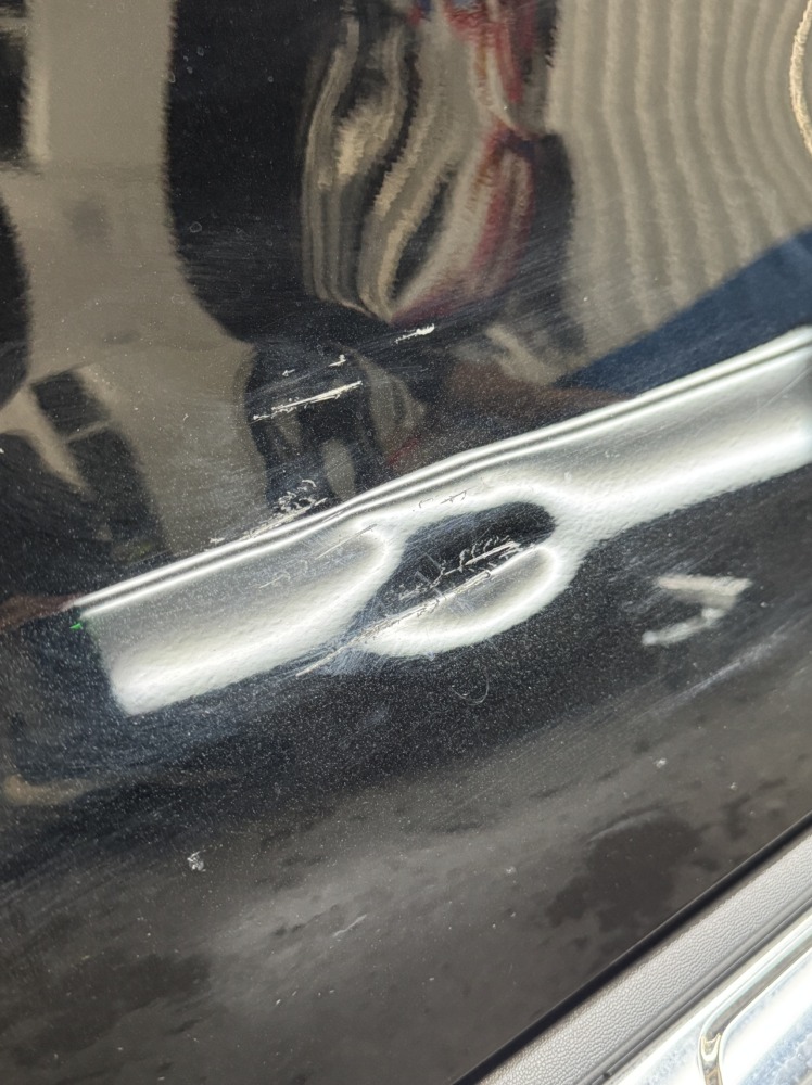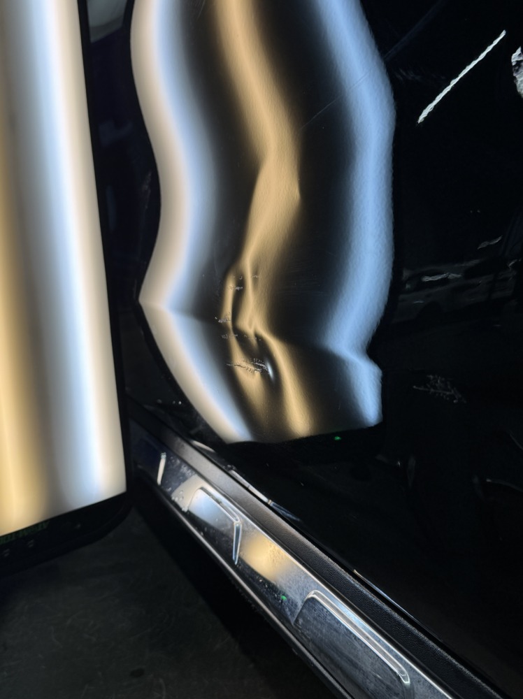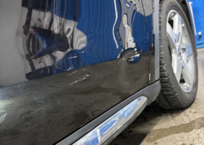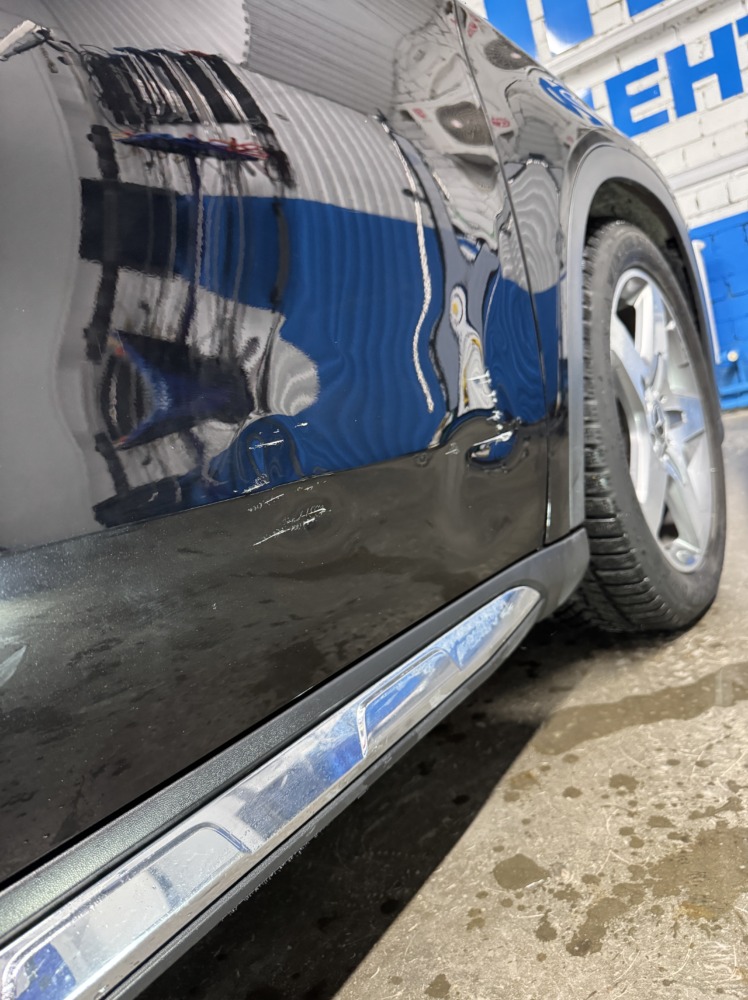 Ремонт вмятин на двери Mercedes CLA. На вопрос мужа «как так произошло?» ответ супруги был очевиден: