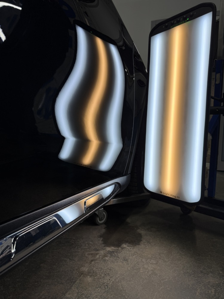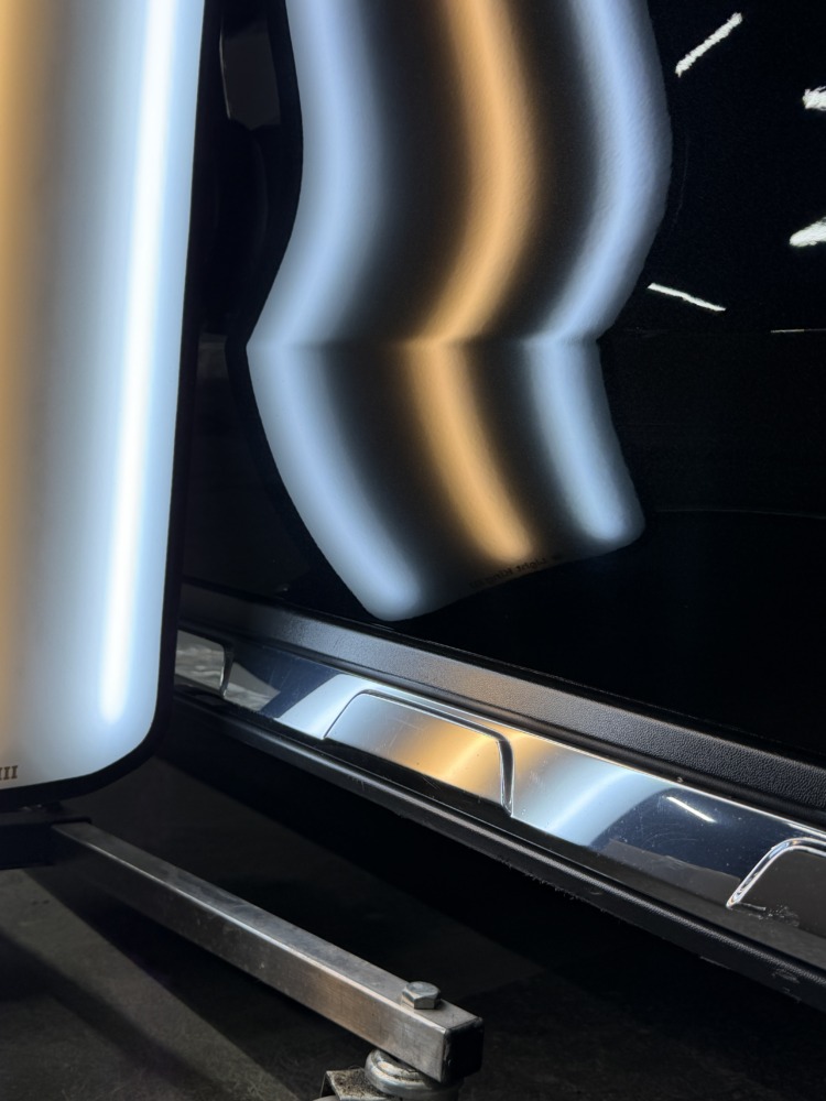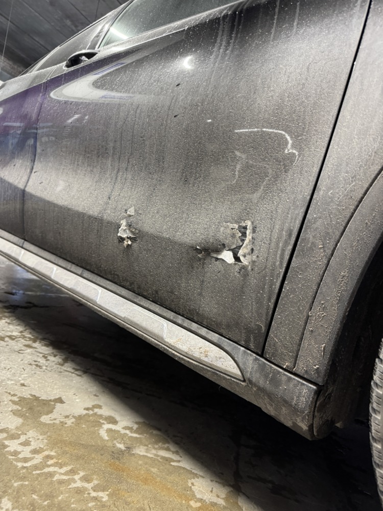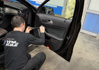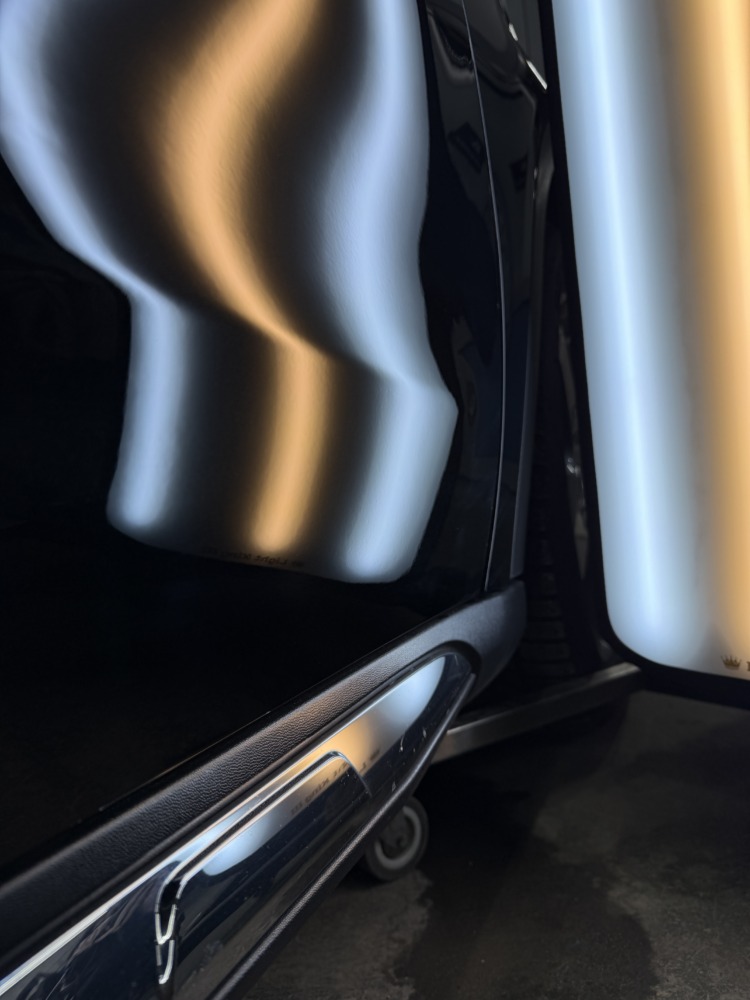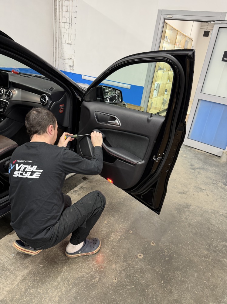 Ремонт вмятин на двери Mercedes CLA. На вопрос мужа «как так произошло?» ответ супруги был очевиден: