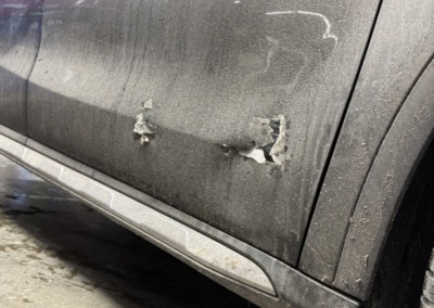 По итогам работ дверь заново забронировали. А последствия неприятного удара остались только в фотопленке владельцев.