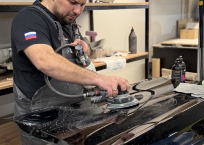 Дверь была сильно деформирована, со сложными узлами, требовавшими тщательной разборки и устранения вмятин.