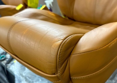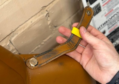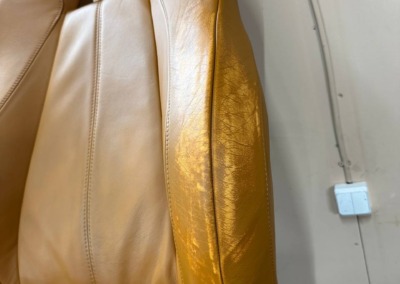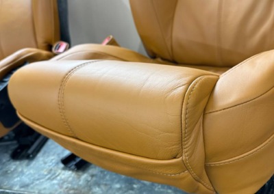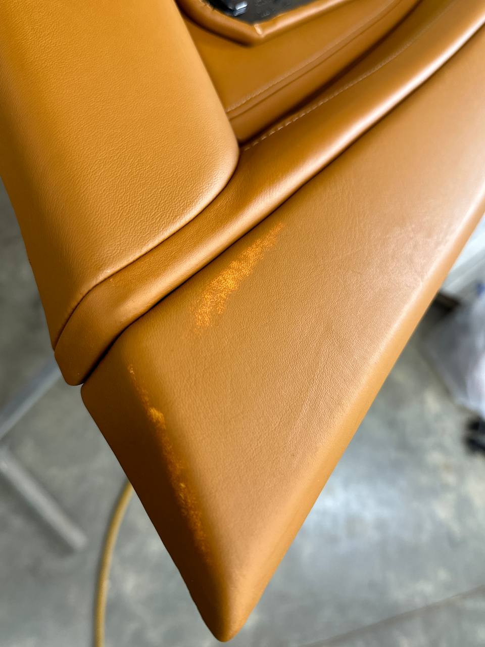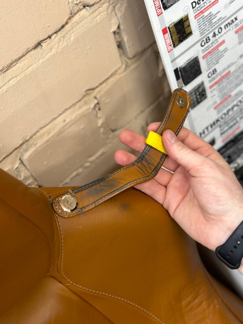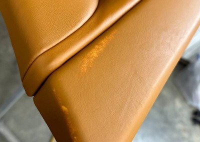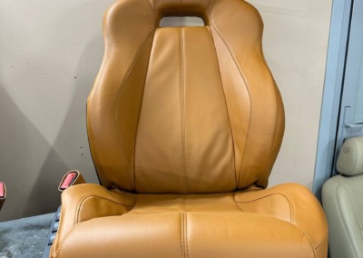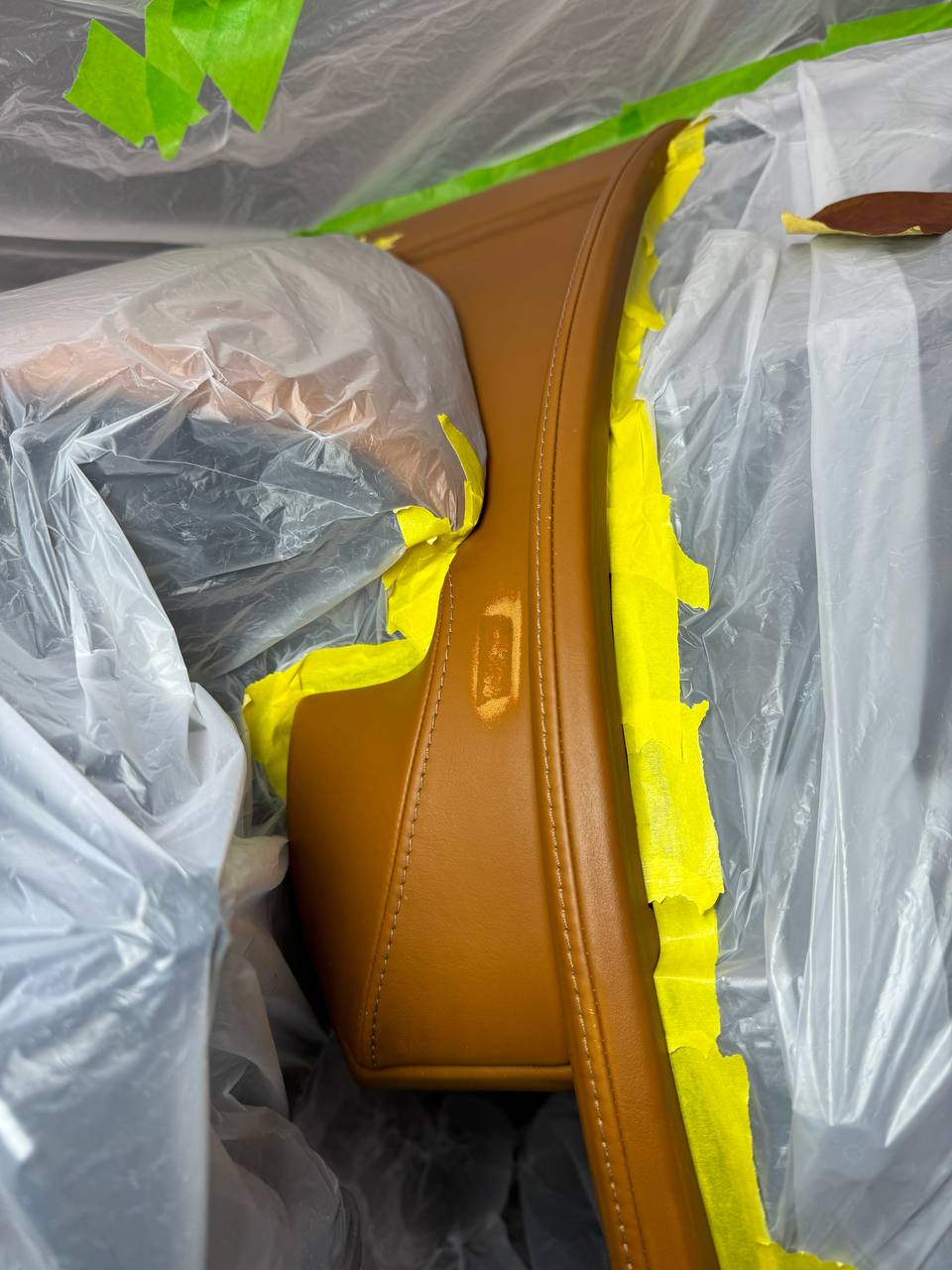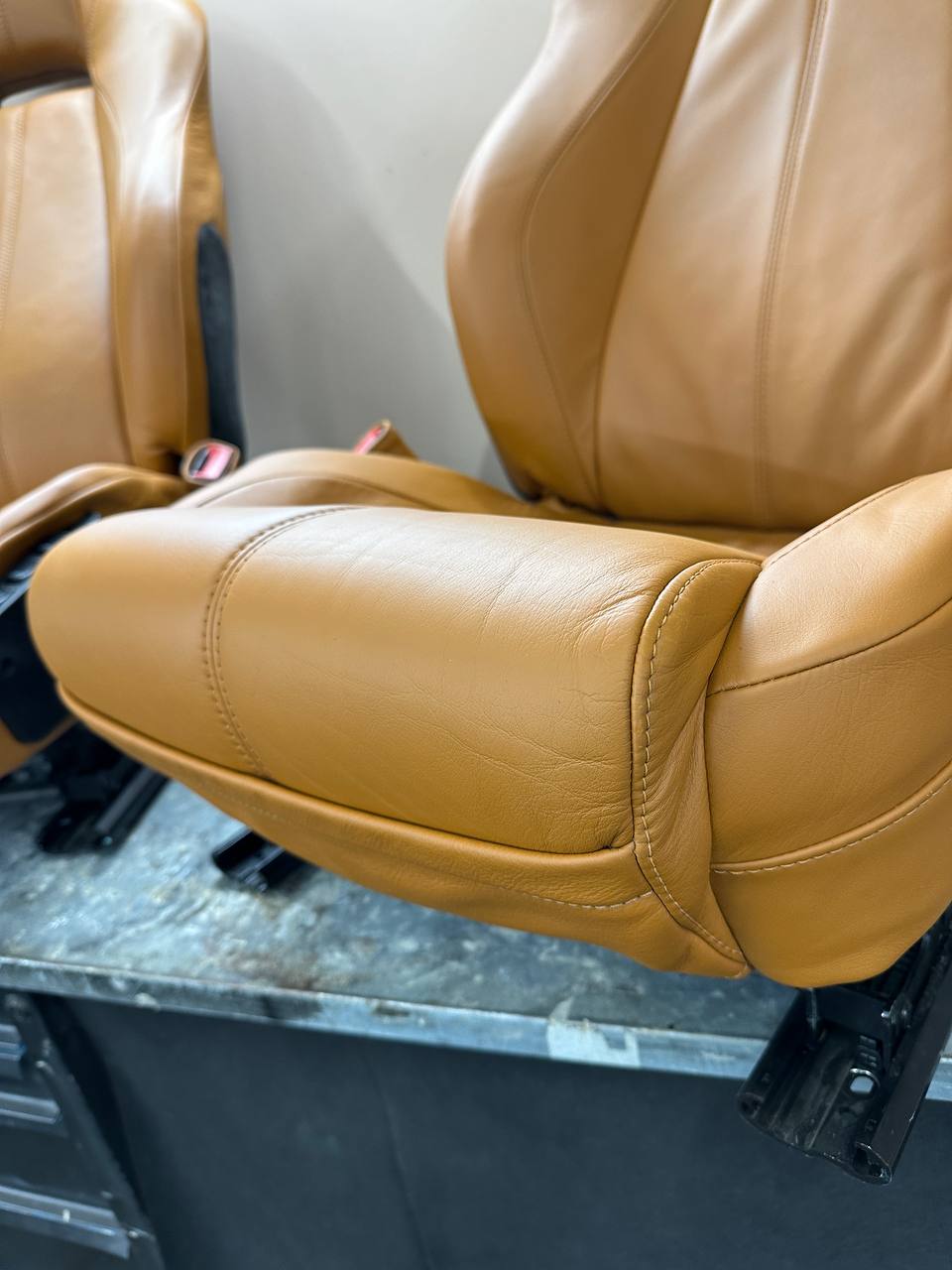 Все рыжие элементы салона были отреставрированы, тщательно подготовлены и окрашены заново — теперь оттенок выглядит глубже, чище и благороднее, подчёркивая спортивный характер автомобиля. Особое внимание уделили каждой детали: от фактуры поверхности до равномерности покрытия.