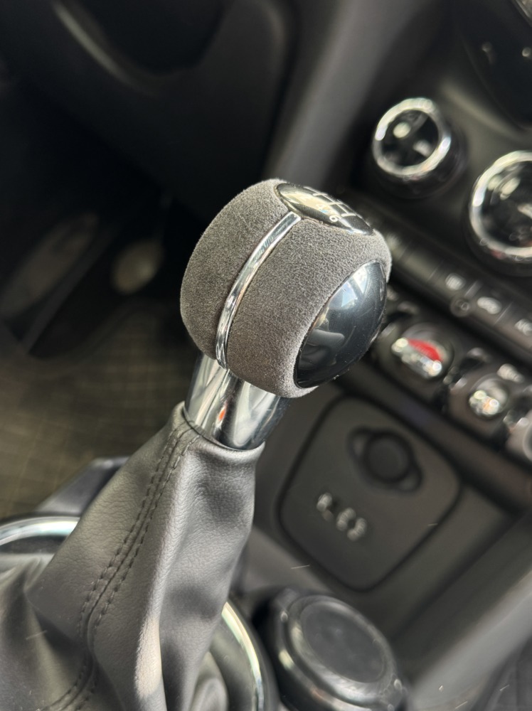 Ручка КПП тоже перетянута в алькантару. Изначально она была в коже.
