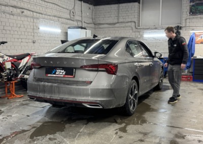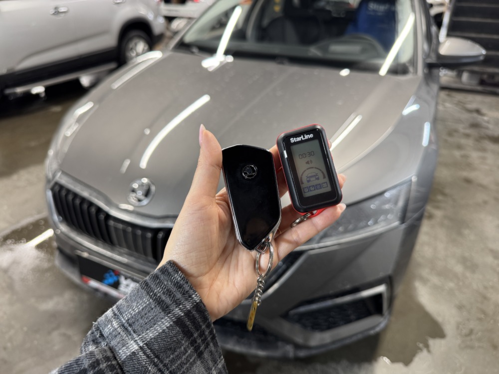 Дооснастили новую Skoda Octavia A8 охранной системой StarLine E97. Управление с брелка и тройным нажатием со штатного ключа.