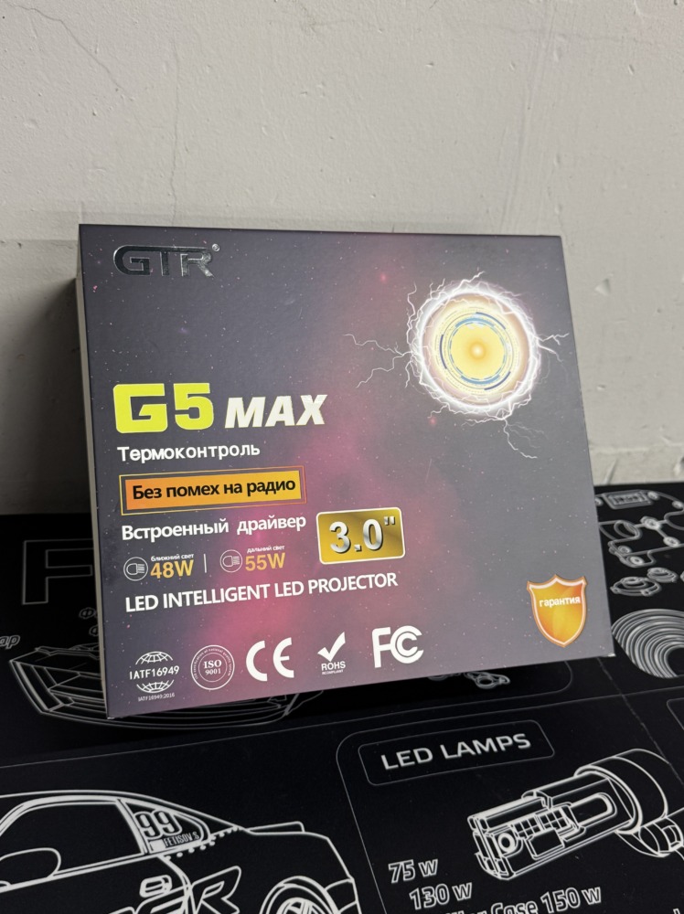Мы установили наш вариант — GTR G5 MAX. Сделали полировку фар поверх полиуретановой плёнки, убрав образовавшиеся в процессе эксплуатации царапины.