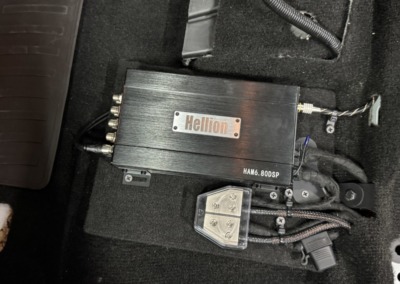 фронтальную двух-компонентную акустику. Тыловая акустика установлена в полку. Так же сабвуфер компании Hellion установлен в запасное колесо.