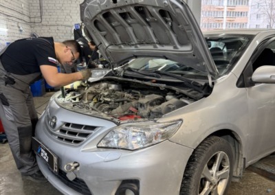 Toyota Corolla не запускалась, привезли её к нам на эвакуаторе. Провели диагностику, выявили необходимость замены свечей зажигания, приводного ремня и выполнили регламентную замену топливного фильтра. Друзья, подготовьте свои автомобили к зимнему периоду заранее!
