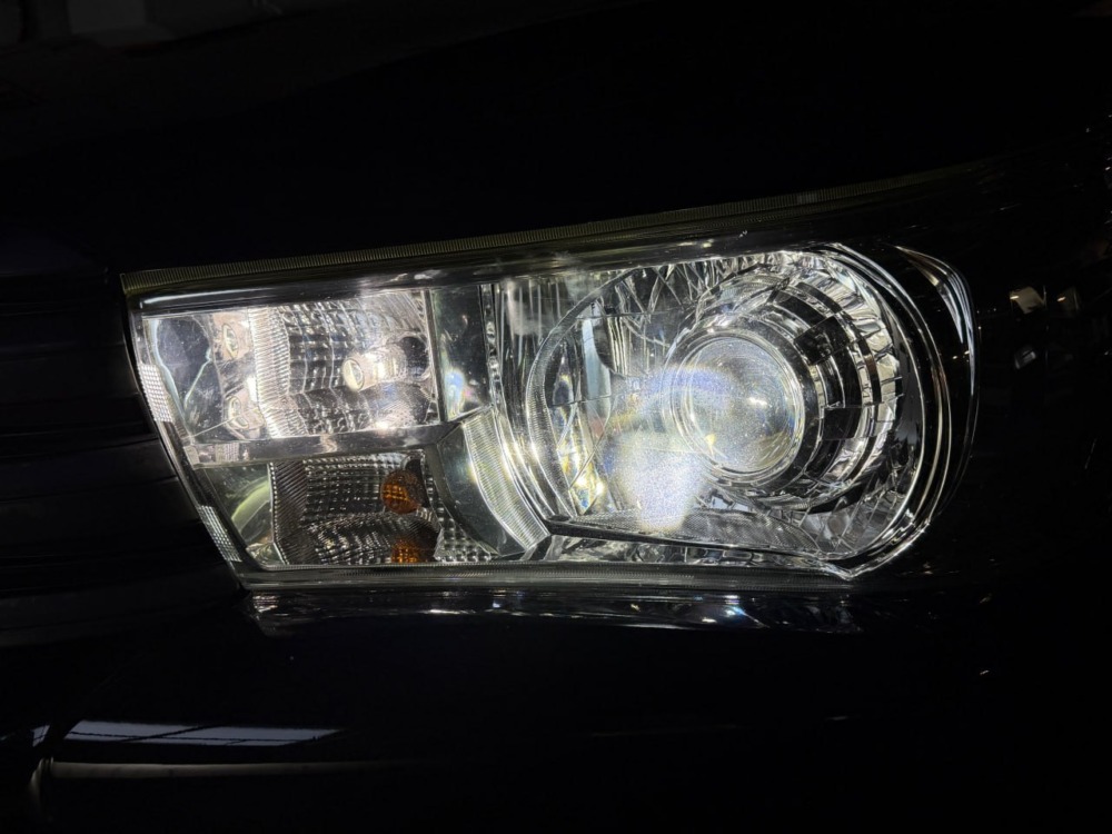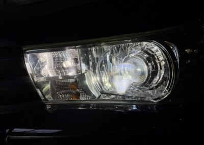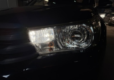 В штатные галогеновые рефлекторы были установлены bi-led модули от компании IPH Car, которые оснащены двумя светодиодными чипами. Эти модули обеспечивают равномерное белое освещение и яркий, широкий световой пучок. Завершающим этапом работ стала регулировка фар на профессиональном реглоскопе.