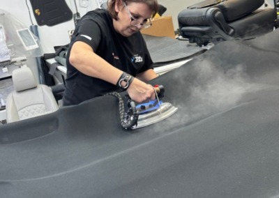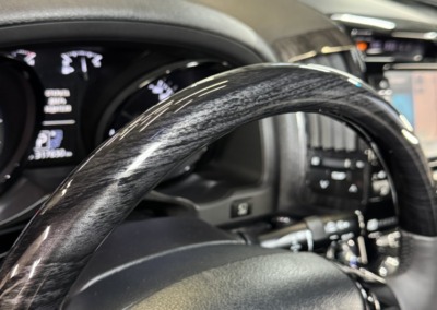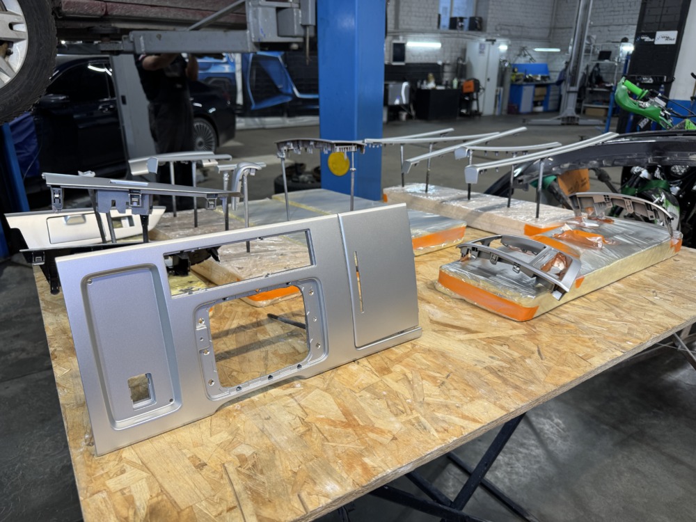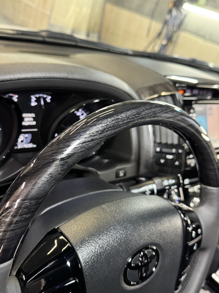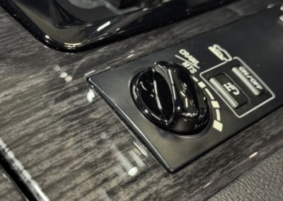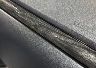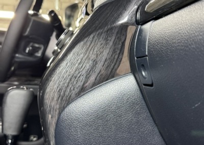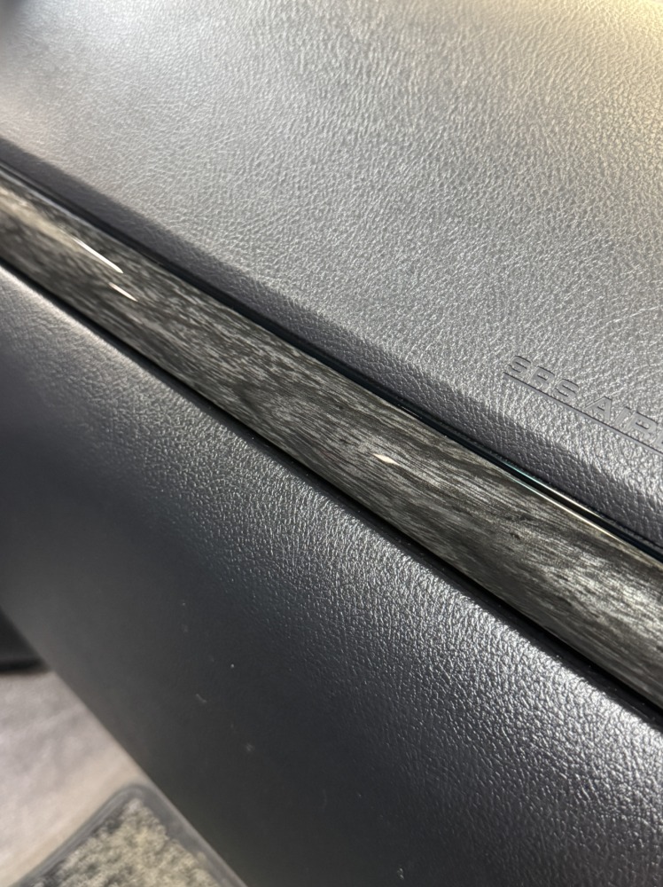 Полностью убрали заводской шпон и все серебристые элементы на дверных картах, торпедо и центральной консоли.