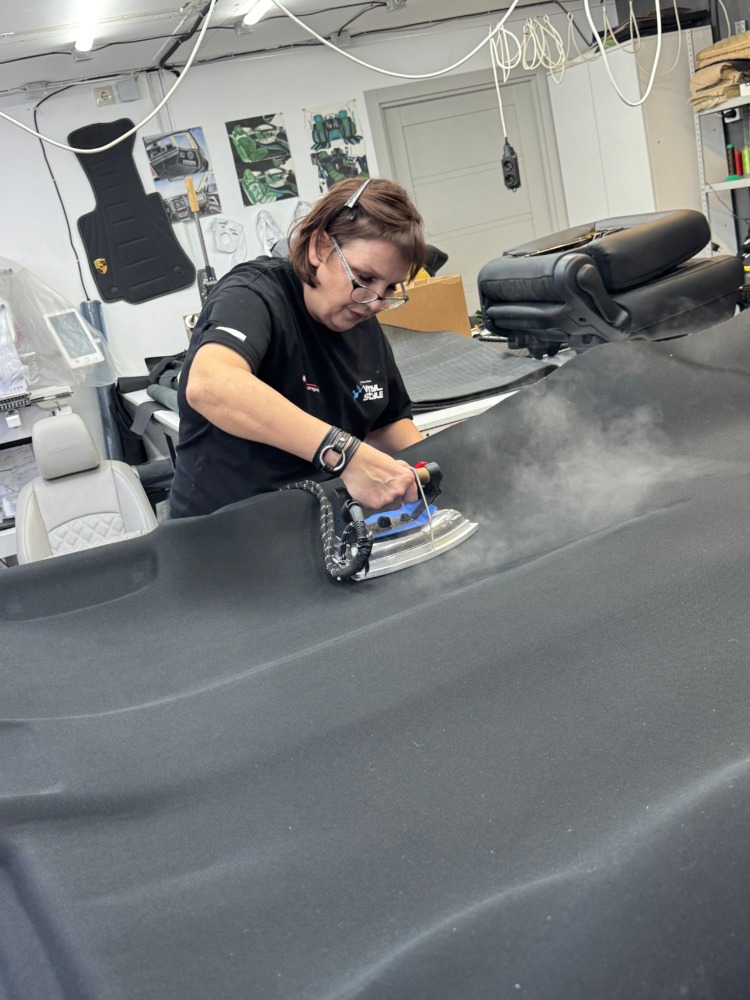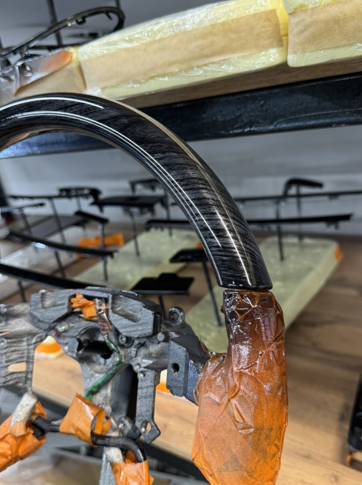 Резиновые ручки перетянули в кожу, выполнили перетяжку руля и ручки КПП.