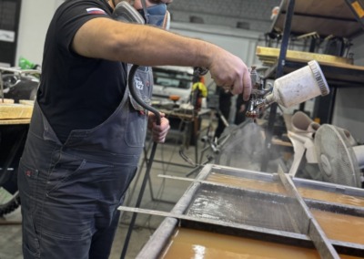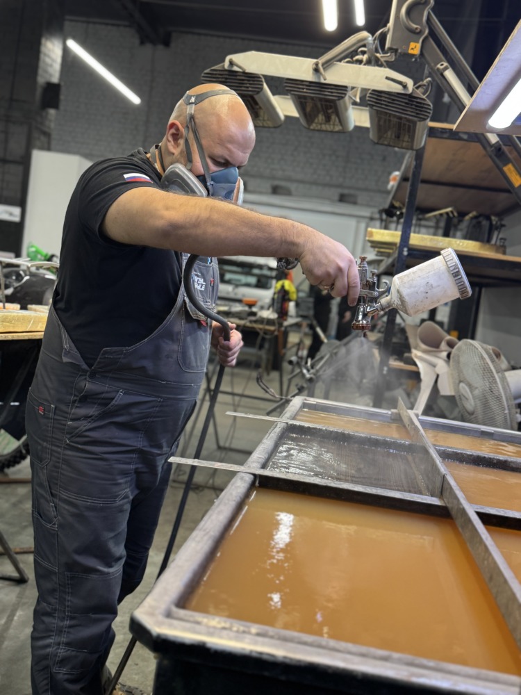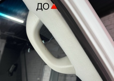 Ручки дверей, вставки на руле и мелкие детали консоли покрасили в чёрный глянец для максимального контраста.