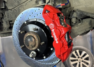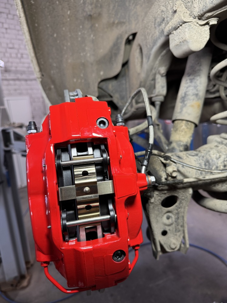 Ну и вместо 1 поршня мы установили 4-х поршневые суппорты, спереди встали 6 поршневые.
