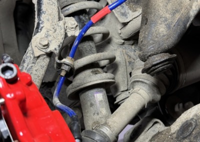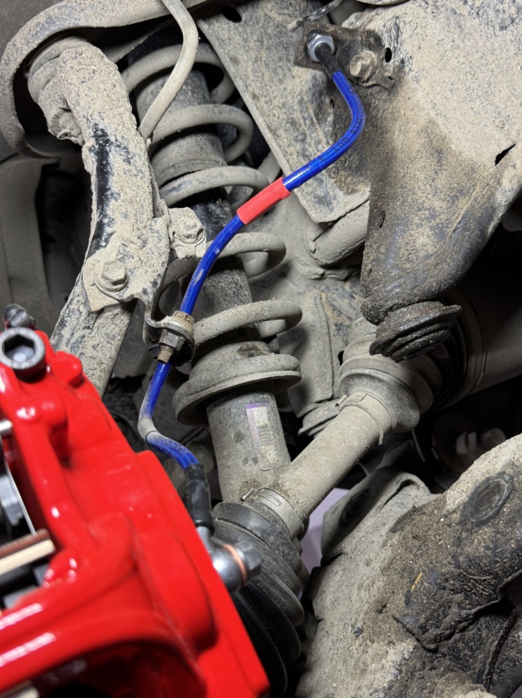 В комплекте так же идут адаптеры и армированные шланги тормозные на обе оси, которые мы устанавливаем так, чтобы нигде ничего не натирало.