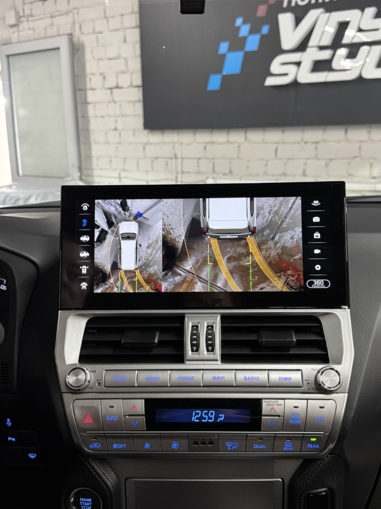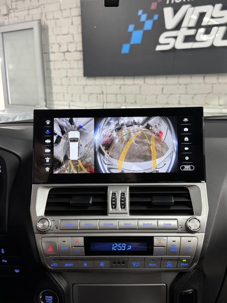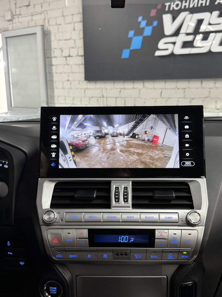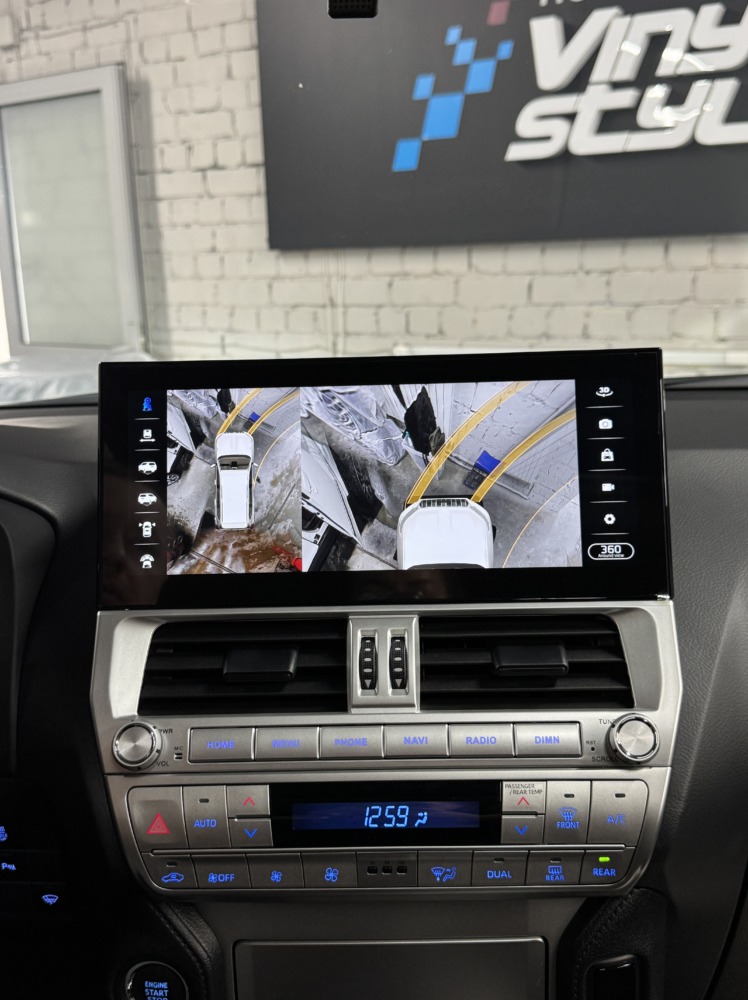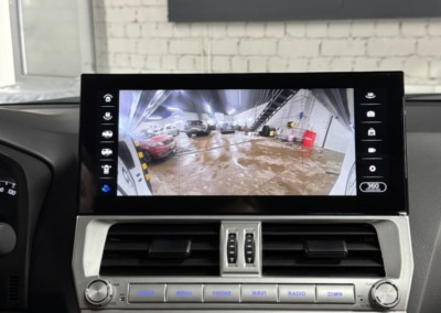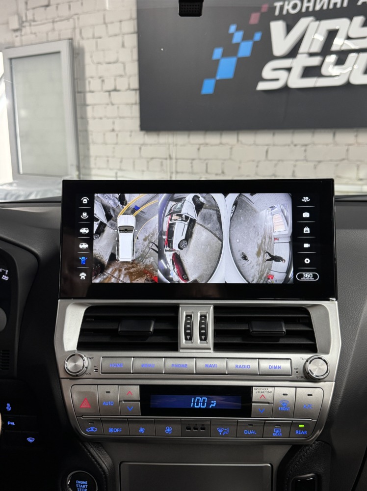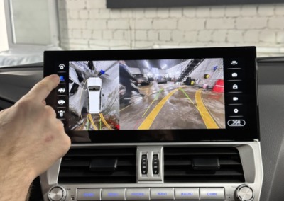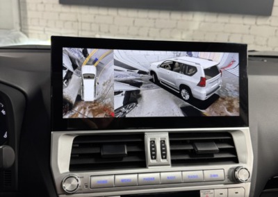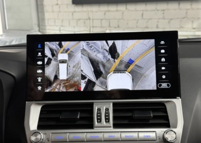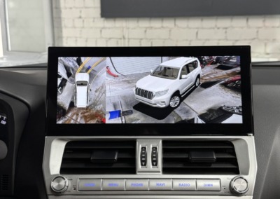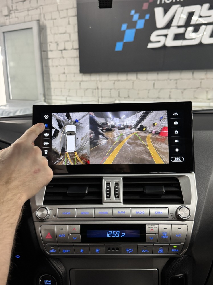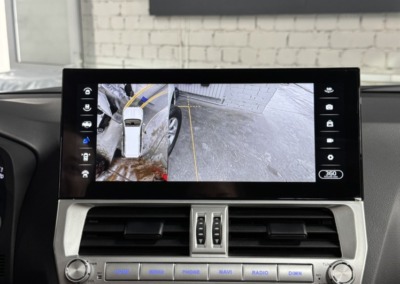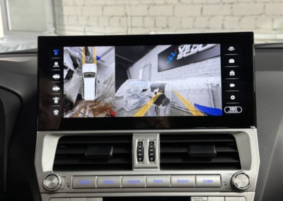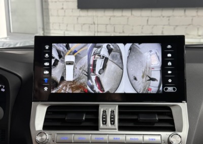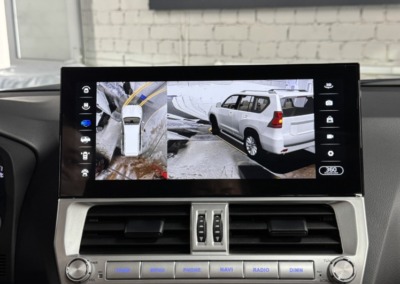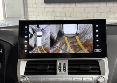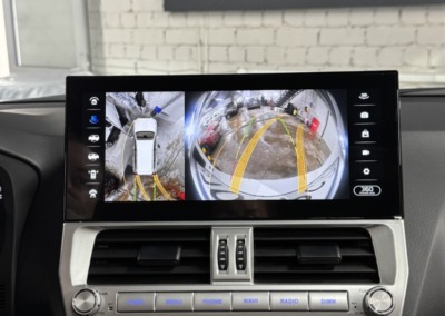 Штатное головное устройство заменено на 12,3-дюймовую мультимедийную систему на базе Android. Дополнительно автомобиль дооснащён системой кругового обзора 360° с AHD-камерами высокого разрешения и возможностью переключения изображения с любого ракурса вокруг автомобиля.