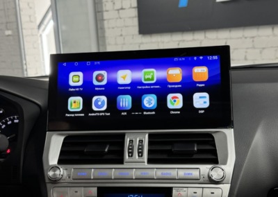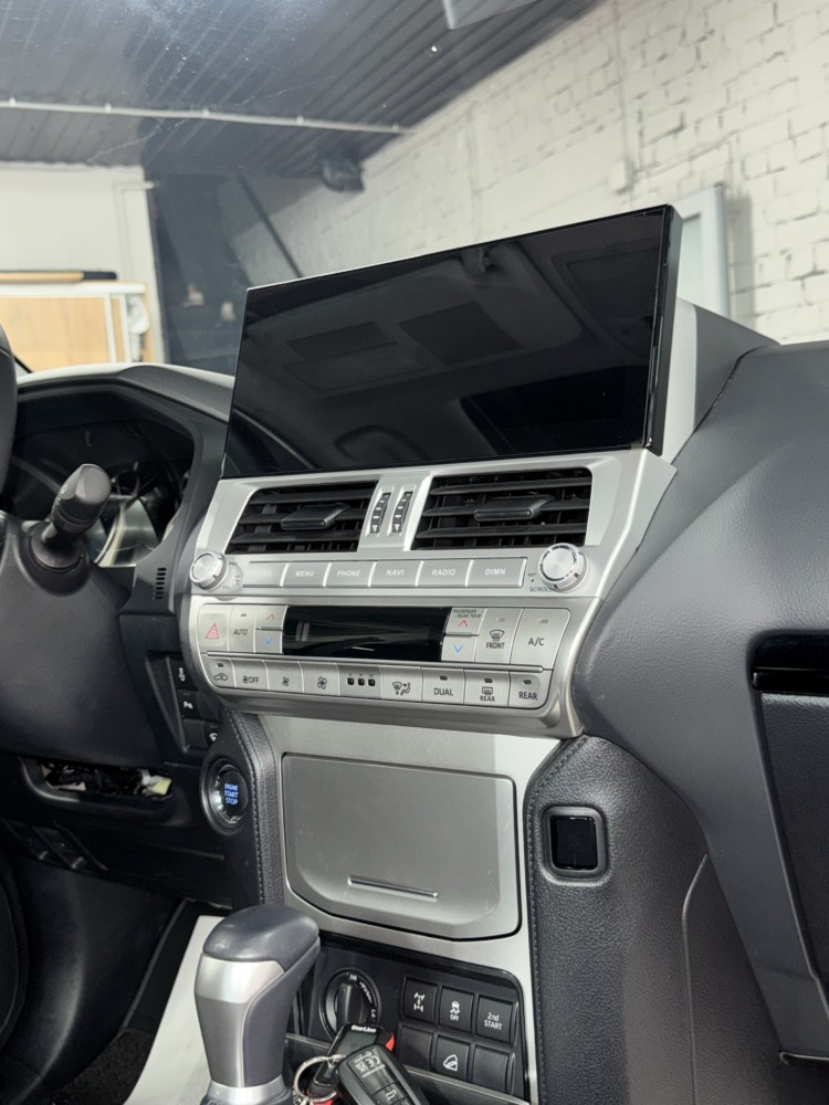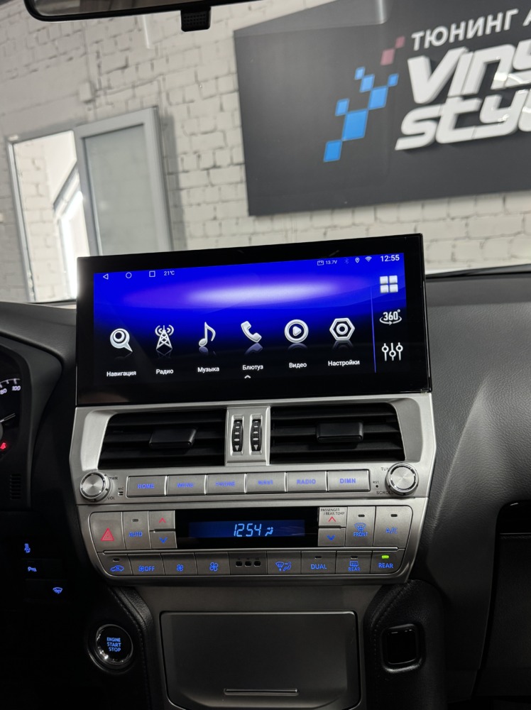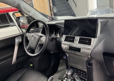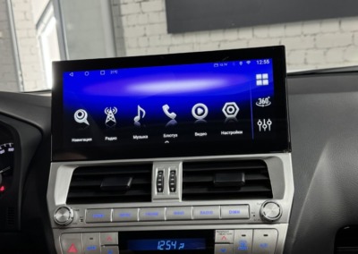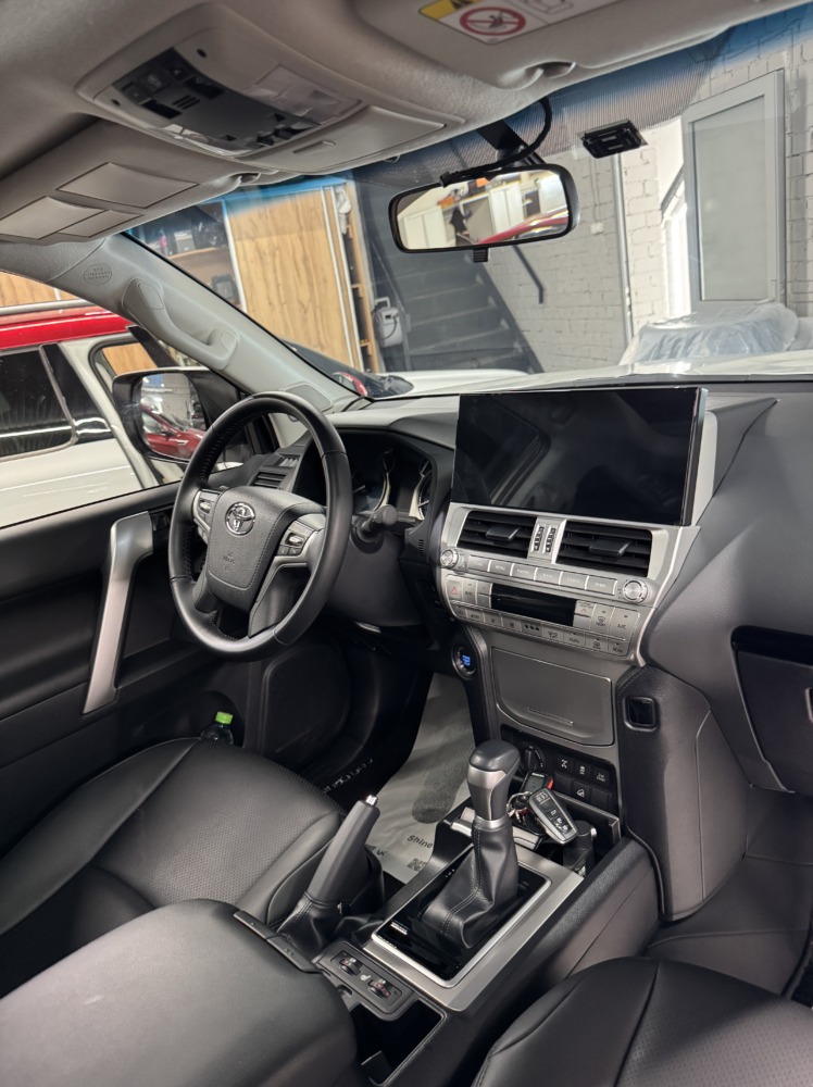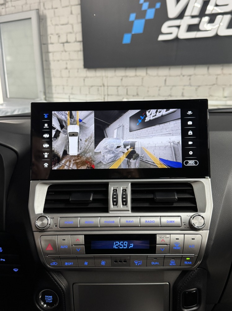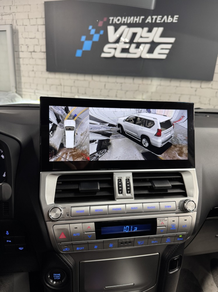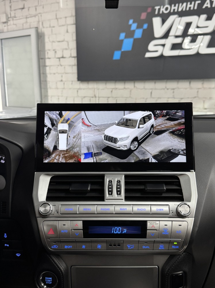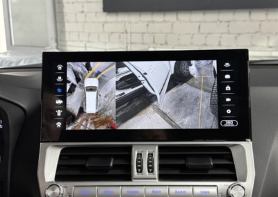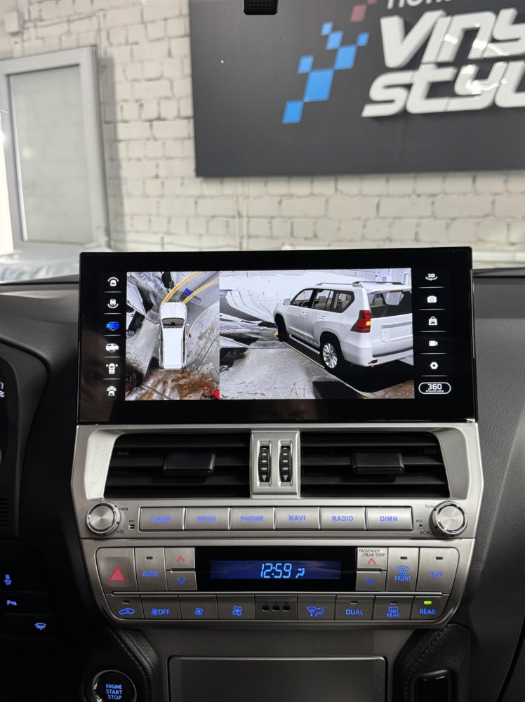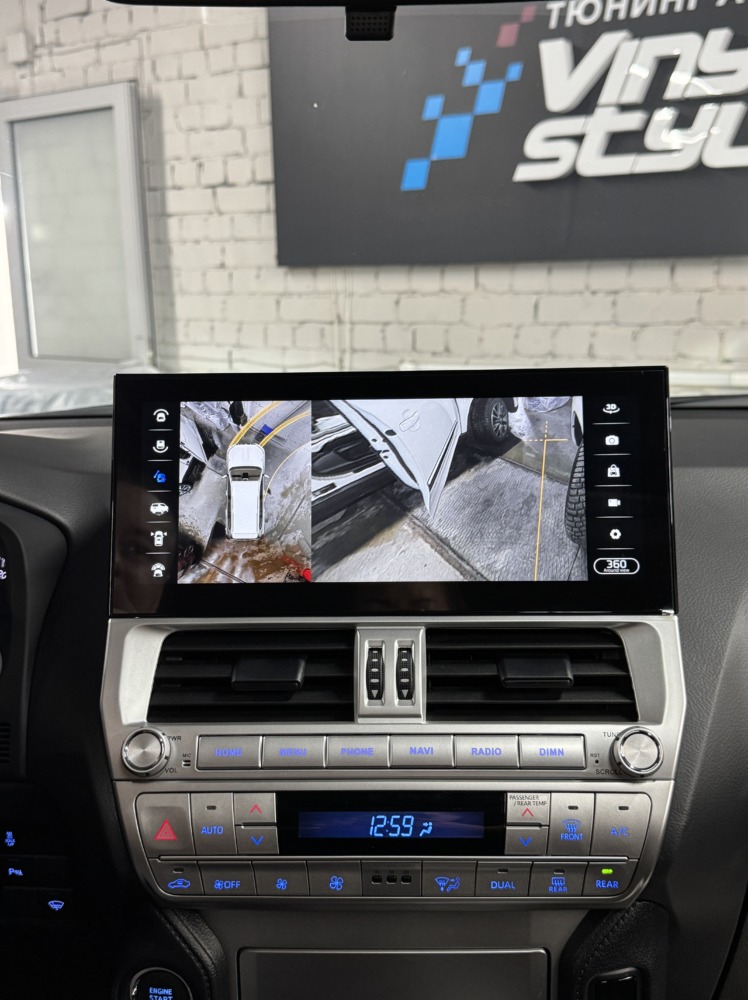 Штатное головное устройство заменено на 12,3-дюймовую мультимедийную систему на базе Android. Дополнительно автомобиль дооснащён системой кругового обзора 360° с AHD-камерами высокого разрешения и возможностью переключения изображения с любого ракурса вокруг автомобиля.