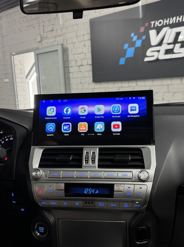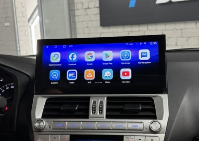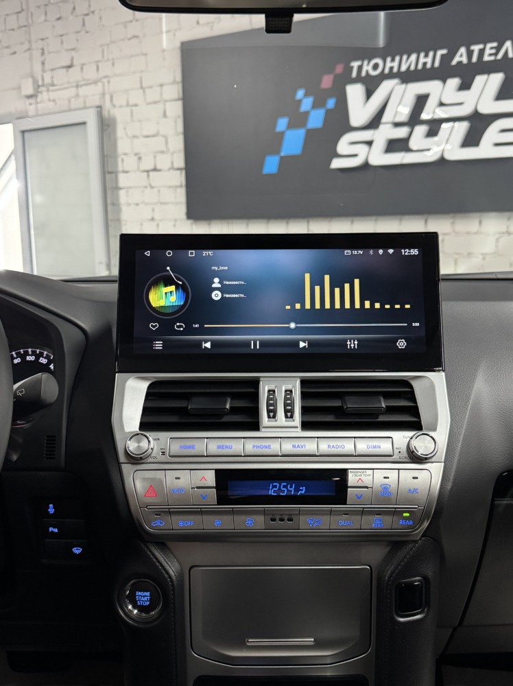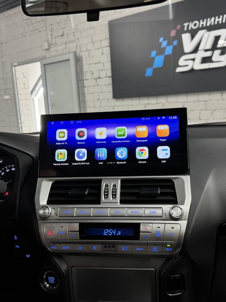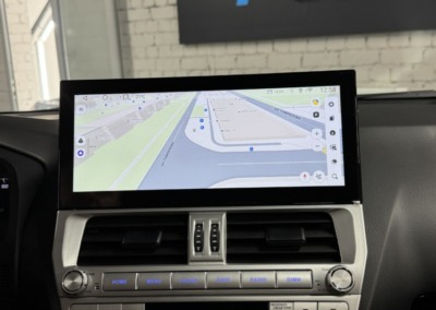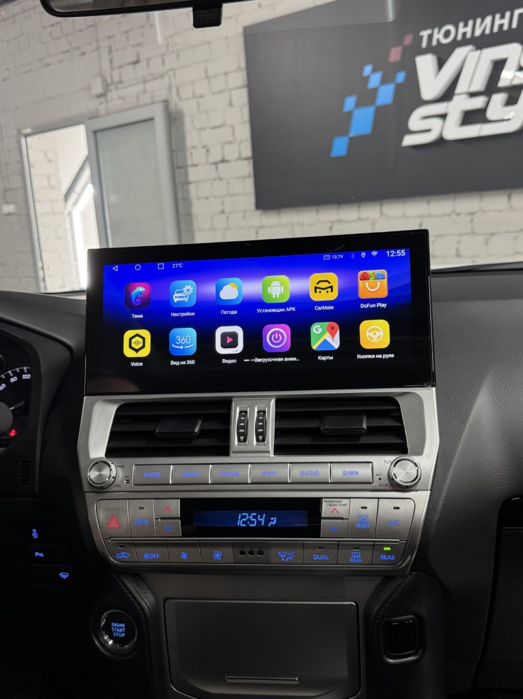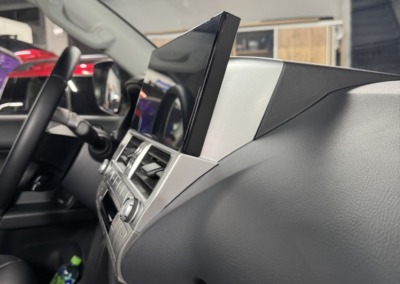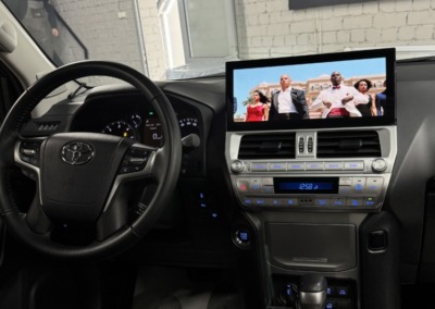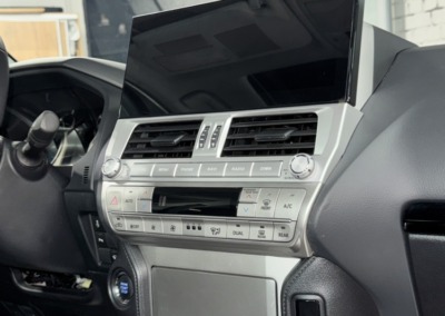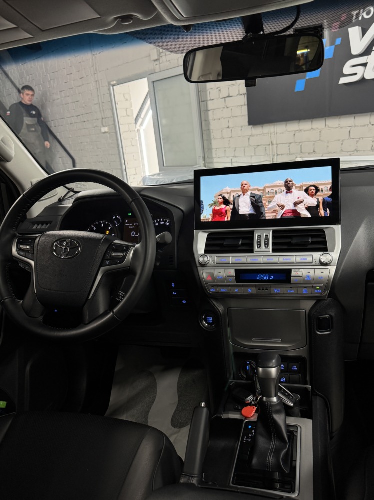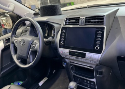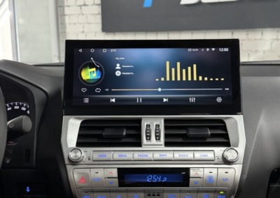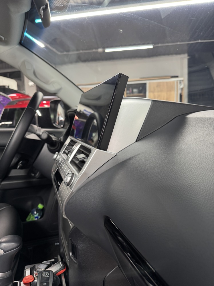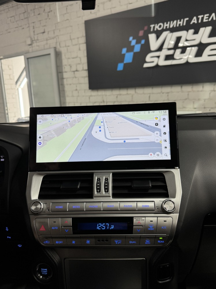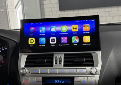Штатное головное устройство заменено на 12,3-дюймовую мультимедийную систему на базе Android. Дополнительно автомобиль дооснащён системой кругового обзора 360° с AHD-камерами высокого разрешения и возможностью переключения изображения с любого ракурса вокруг автомобиля.