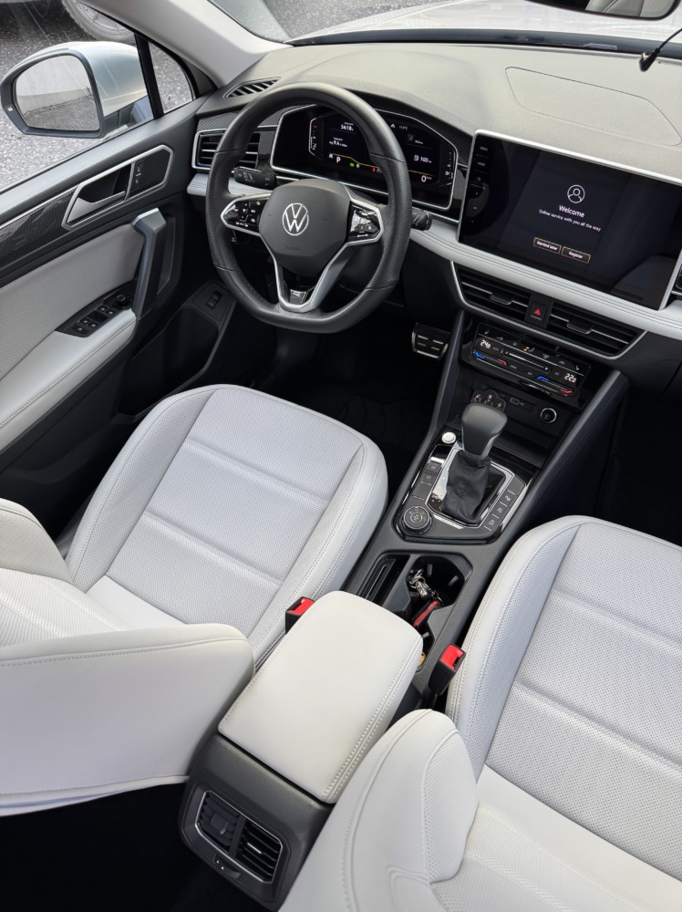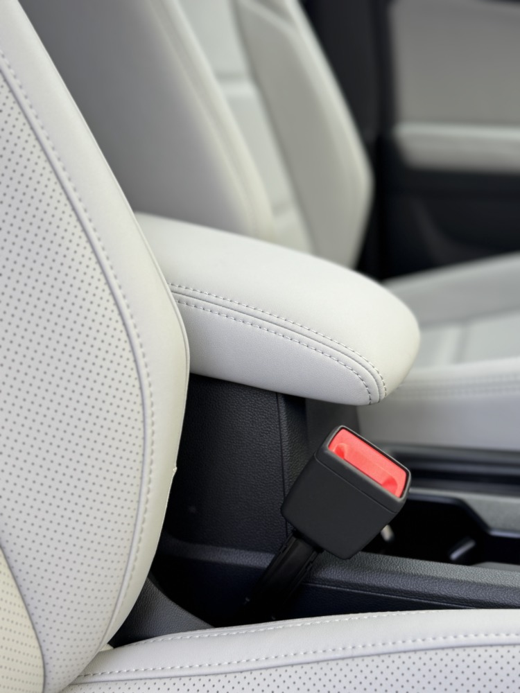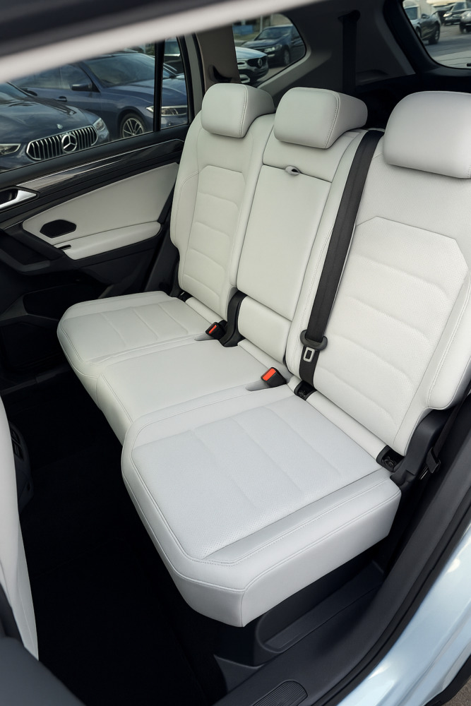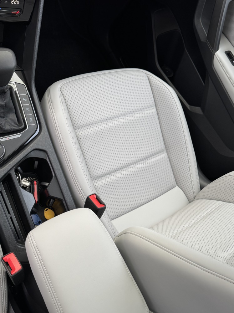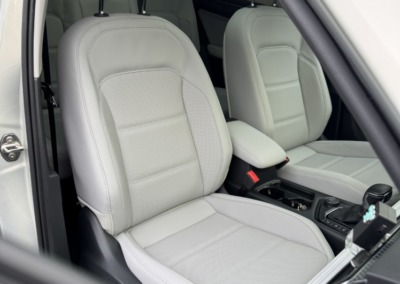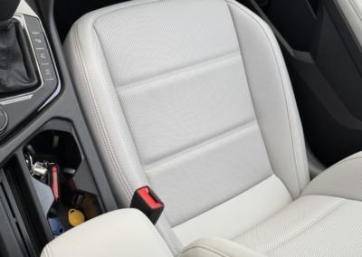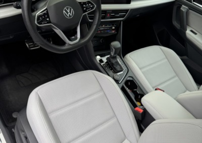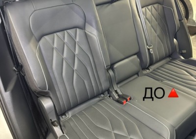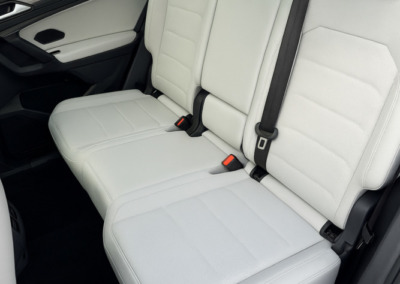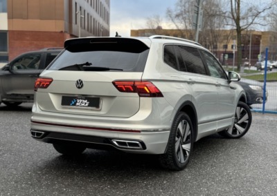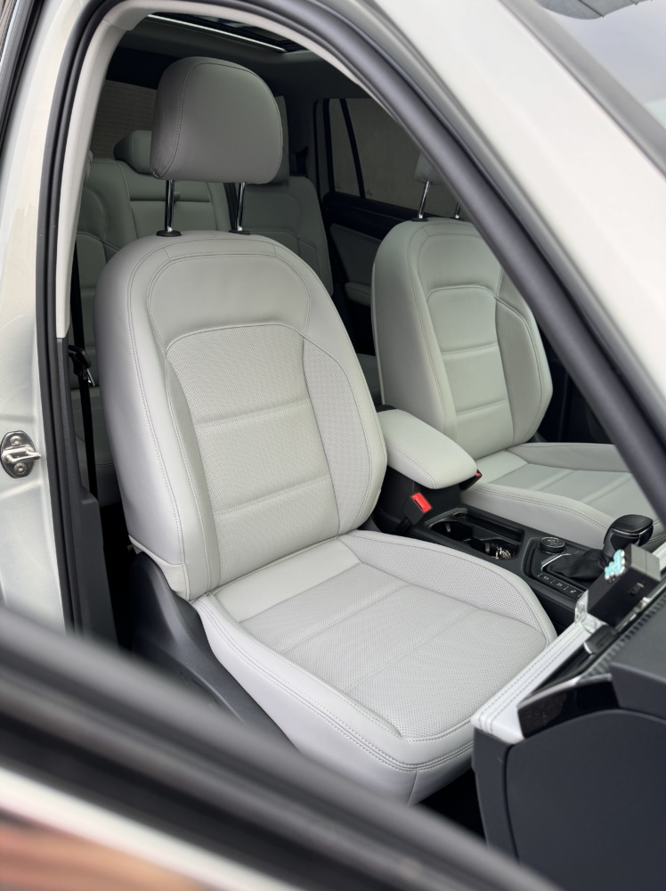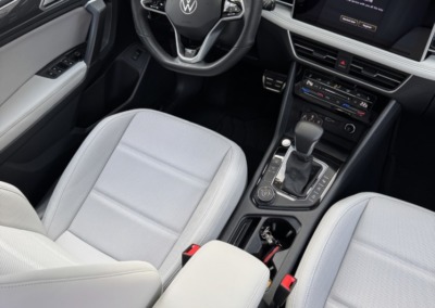 Например, на этом новом Volkswagen Tiguan мы кардинально изменили интерьер: перетянули сиденья и дверные карты не просто изменив цвет, но и полностью обновив их дизайн.