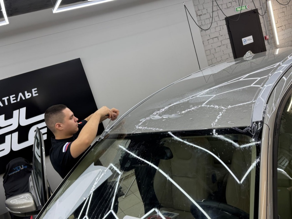 - боковые стойки лобового стекла — участок крыши (10-15 см от стекла)
