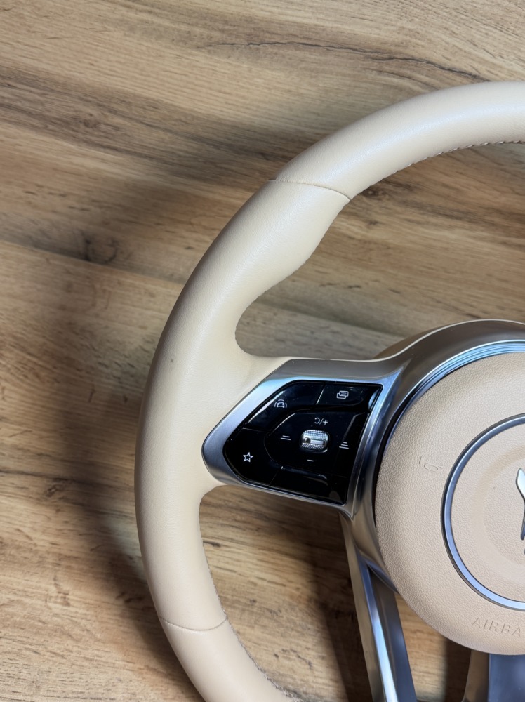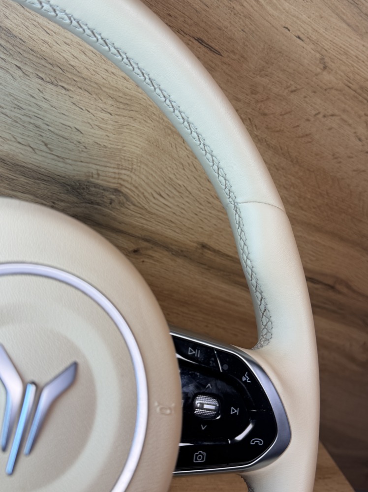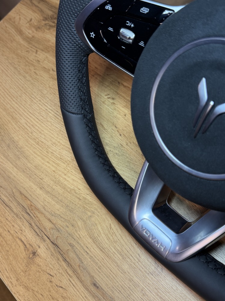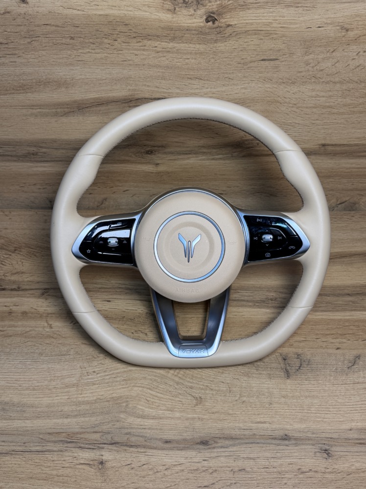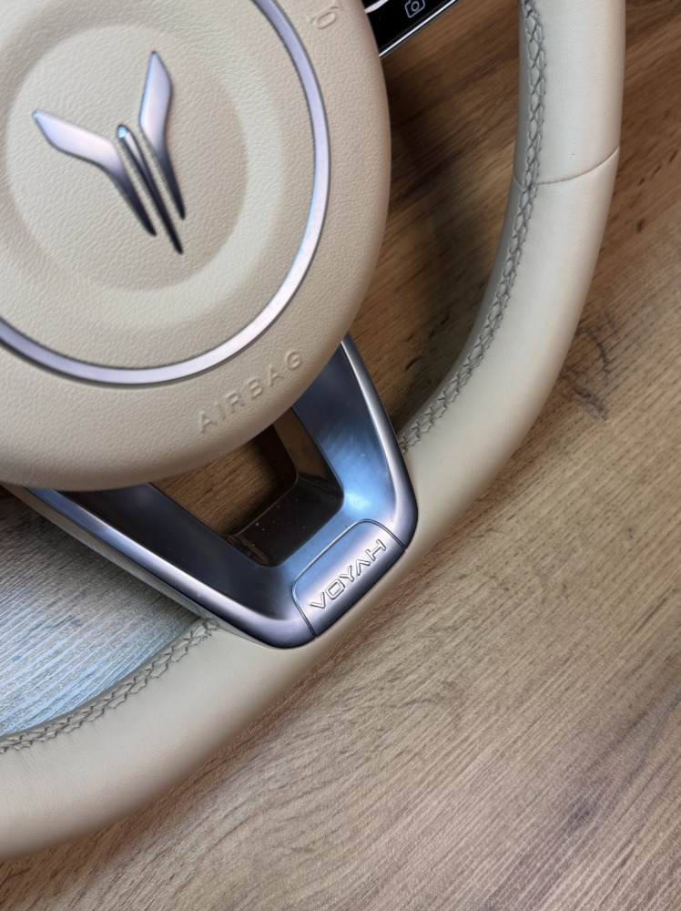 Владельцу этого Voyah Free не нравилось, как в салоне смотрится стоковый бежевый руль с пластиковой подушкой.